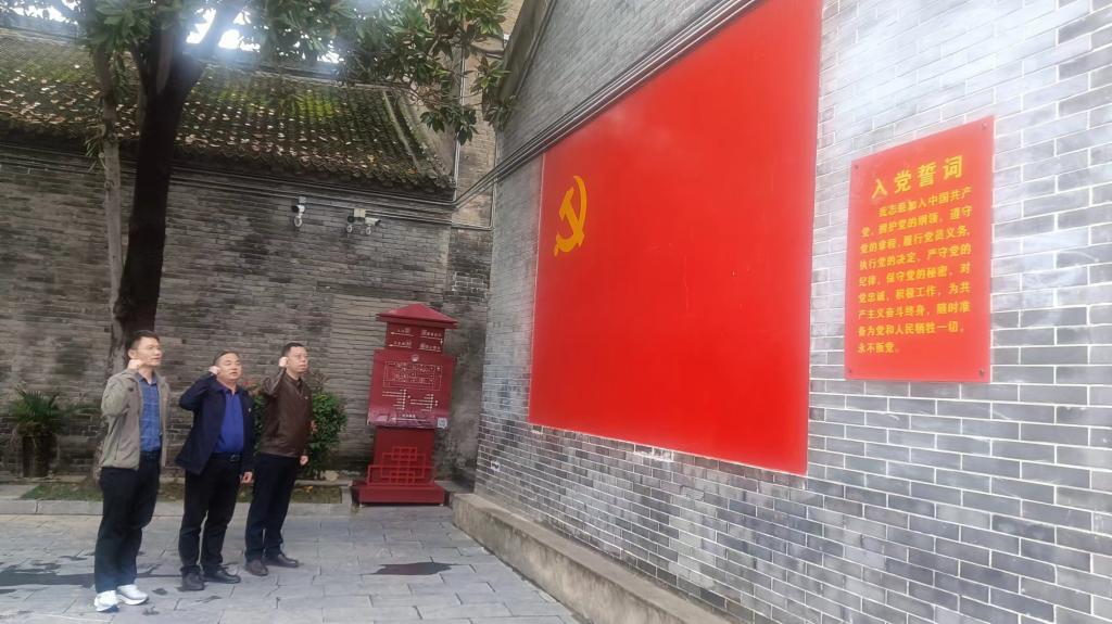 在八路军驻洛办事处纪念馆宣誓墙前,全体党员面向党旗重温入党誓词,坚定理想信念。随后党员们通过文字、照片、文物等内容,深入了解老一辈共产党人为取得革命胜利,英勇无畏、前赴后继的爱国主义精神。
