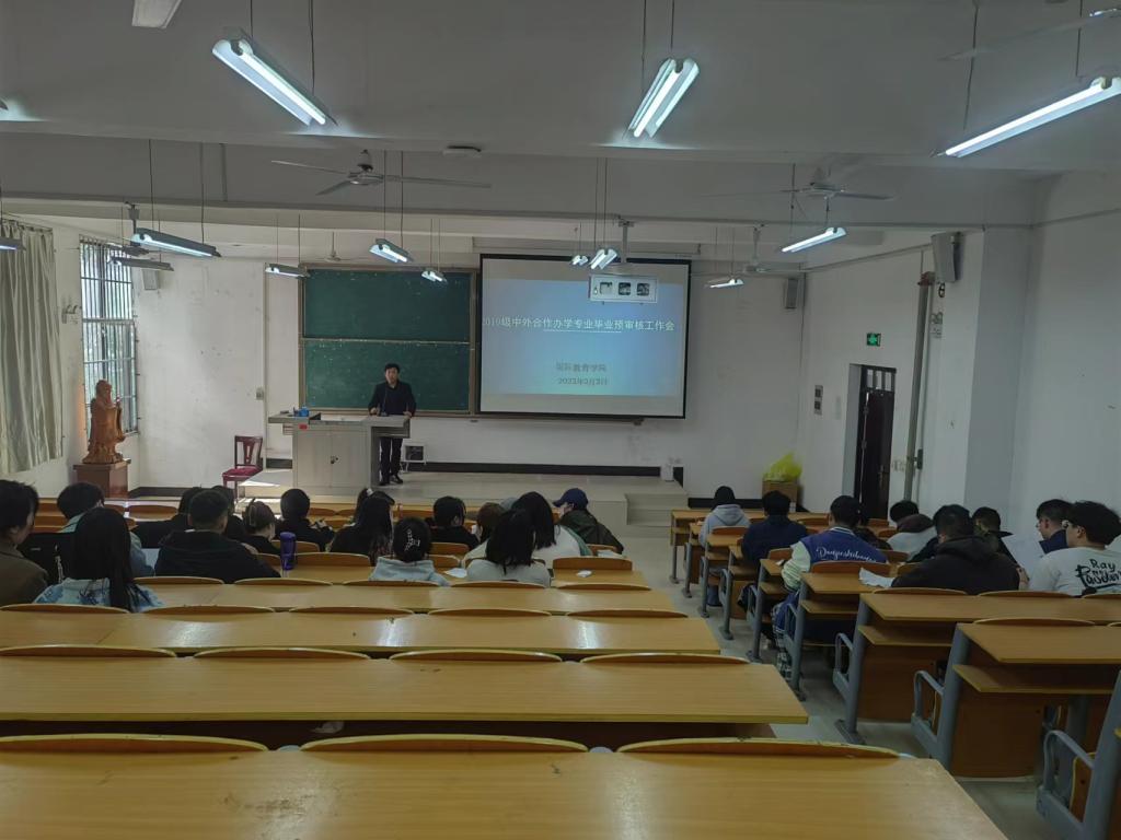 会上,裴院长分别就培养方案学分要求、毕业审核要求、毕业审核工作流程与时间节点等内容进行了详细讲解说明。参会学生结合各自具体情况,围绕毕业审核重点工作和以往毕业审核中存在的问题进行了充分交流和讨论。国际教育学院旨在通过本次中外合作办学专业毕业预审核工作会议,为学生答疑解惑提前排查毕业相关问题,引导督促广大中外合作办学专业毕业生顺利完成学业。