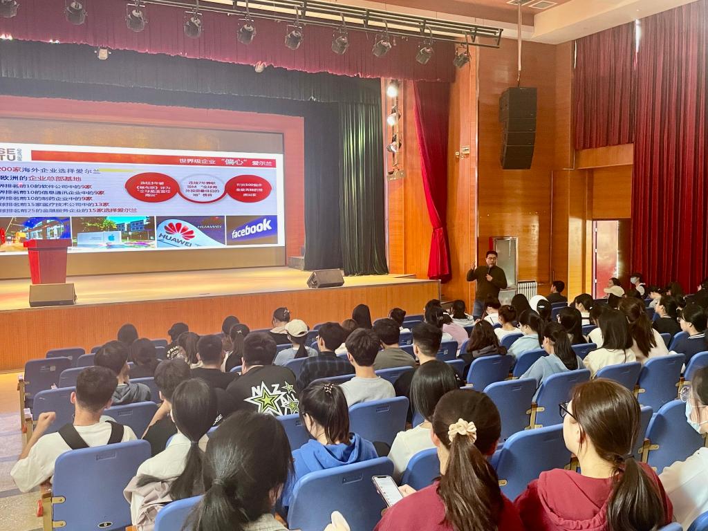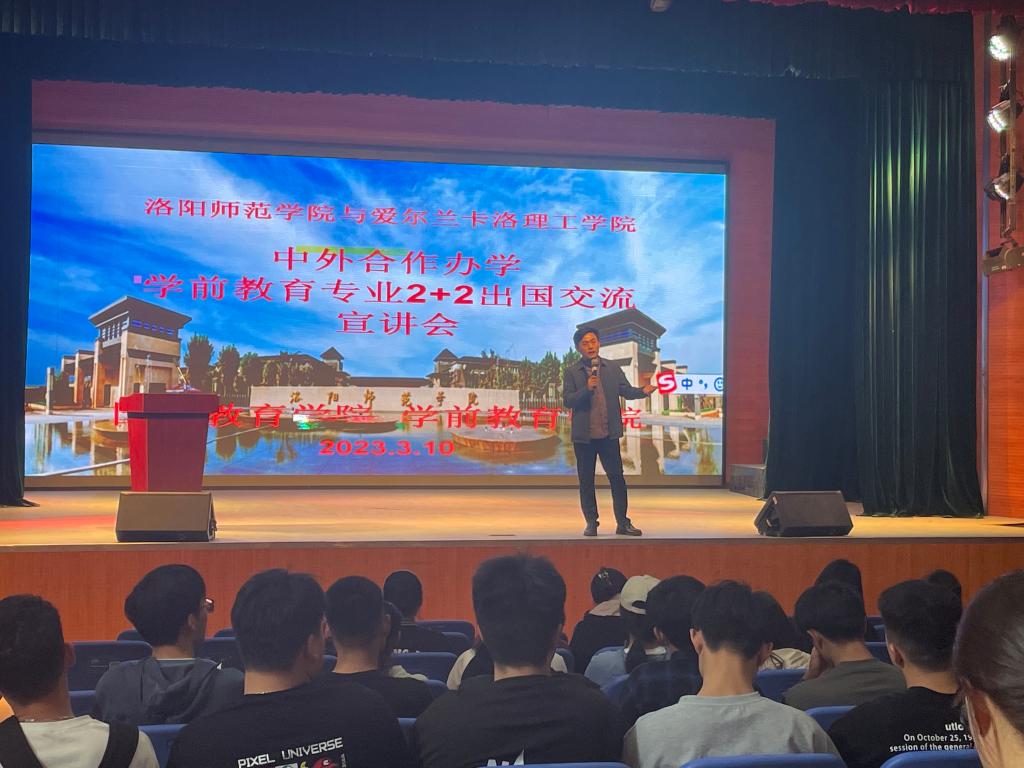 3月10日,我院组织学前教育专业学生出国交流宣讲会。宣讲会由爱尔兰卡罗理工学院中国区负责人赵威主讲,国际教育学院教学副院长裴航主持。