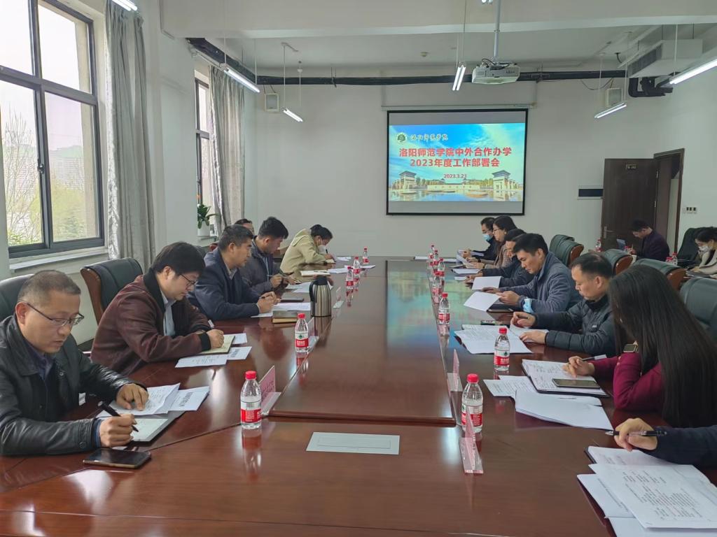2023年3月23日,洛阳师范学院中外合作办学2023年工作部署会在成均楼B202召开。冯恒强副校长出席会议,教务处、招生就业处、国际合作交流处、项目学院领导和教研室主任参会。会议由国际教育学院副院长裴航主持。