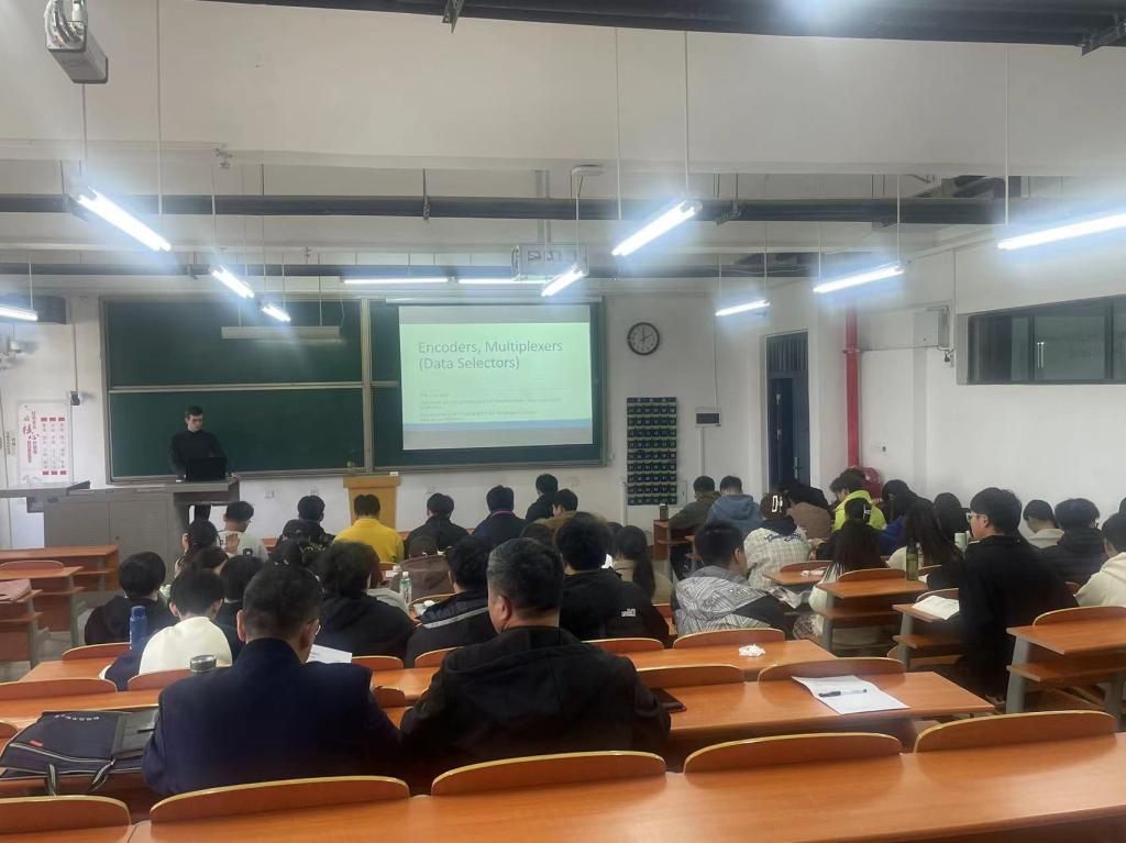 11月22日下午,国际教育学院直属党支部书记吕鹏、院长李华伟到G4-307教室检查中外合作办学项目通信工程专业外籍教师授课情况。