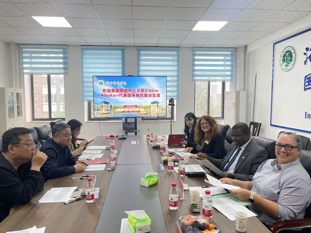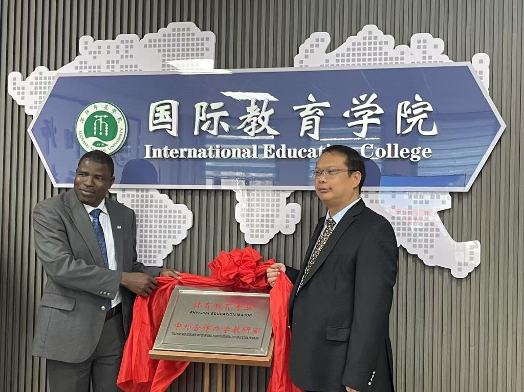 程金龙校长对Ziblim Abukari一行的到来表示热烈欢迎,对体育教育专业中外合作办学项目取得的合作成绩给予了充分肯定。他表示,建设中外合作办学教研室是学校提升国际化办学质量和深化中外合作的积极探索和有效举措,也是为我校体育教育专业中外合作办学项目的运行提供了良好保障。希望双方以此为契机,进一步加强交流、增进互信,取得更加丰硕的合作成果。Ziblim Abukari代表美国西田州立大学转达了对教研室建设的祝贺。双方随后为联合成立的“体育教育专业中外合作办学教研室”揭牌。