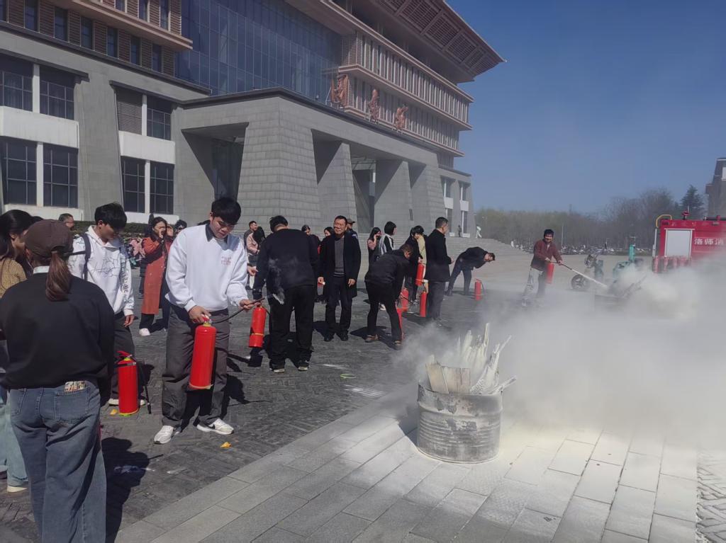 会后,在图书馆西南角,演练正式开始。活动从模拟火灾事故、释放烟雾弹、有效控制现场火情等环节展开,师生现场学习使用灭火器,整场演练开展顺利。