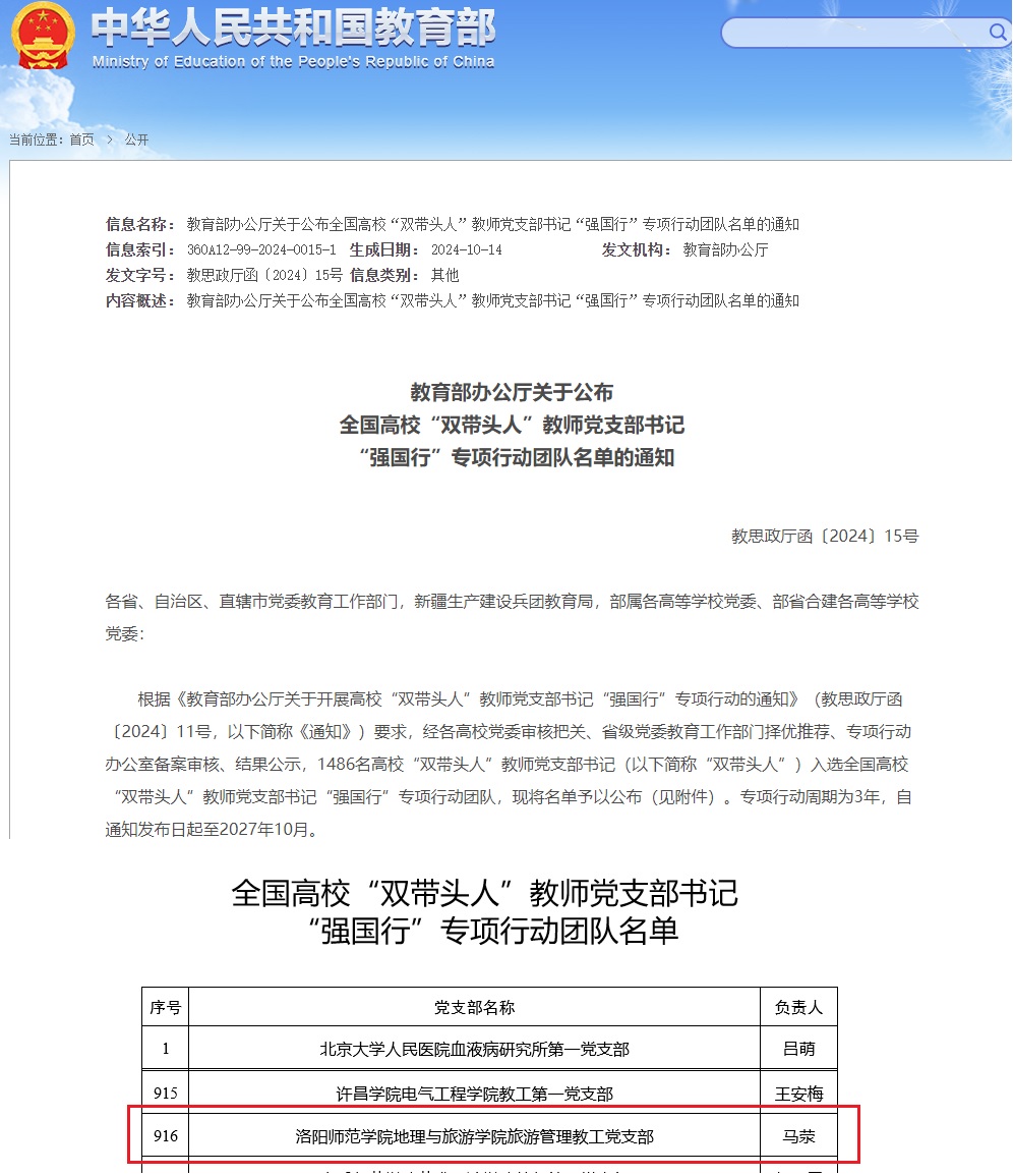 近日,教育部公布“全国高校“双带头人”教师党支部书记“强国行”专项行动团队”名单,我院旅游管理教工党支部成功入选!
