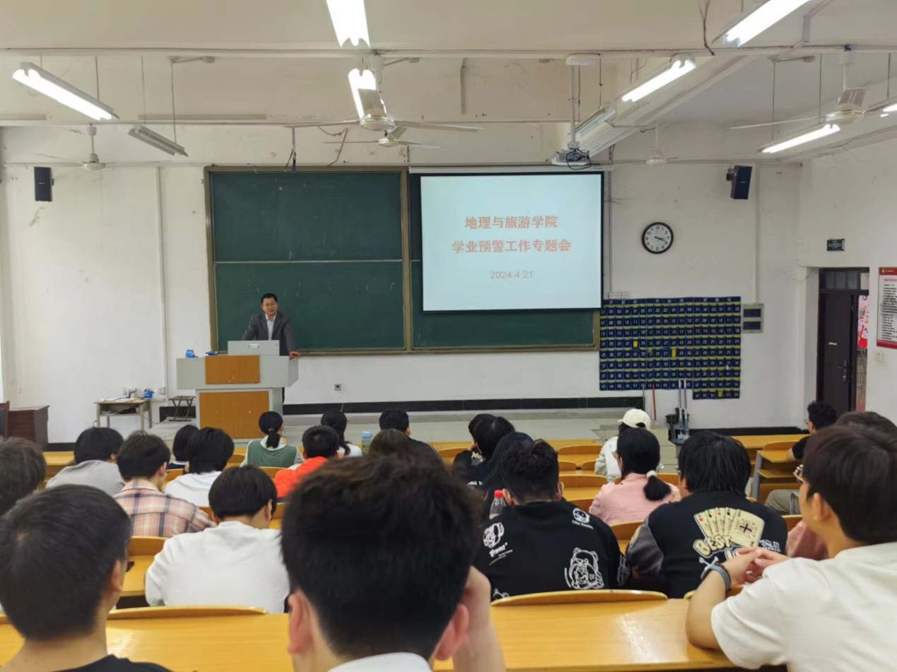 为强化学业预警机制,促进学风建设,提高教育教学质量。4月21日下午,地理与旅游学院在104教室召开了学业预警工作专题会。学院党委副书记李佳、副院长王洪瑞出席会议,全体辅导员、部分班主任和任课教师代表参加会议。会议由学院教务办副主任许书贞主持。