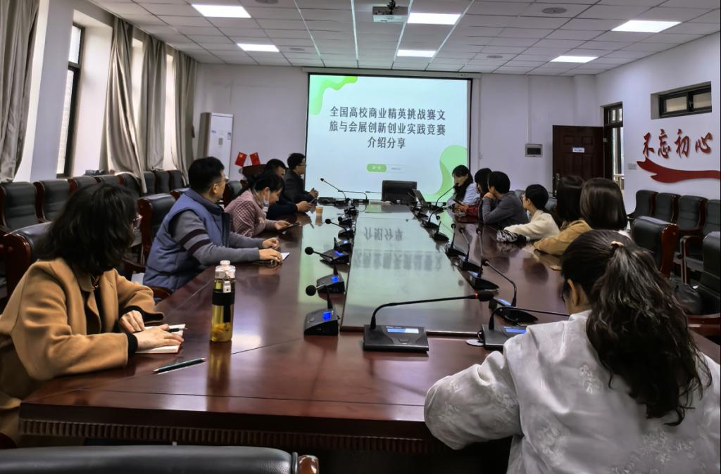 为了搭建高素质人才培养平台,提升专业建设成效,激发教师指导学生参加学科专业竞赛的积极性, 3月27日下午我院在A2-201会议室举行了“全国高校商业精英挑战赛”文旅文创赛道赛事经验交流会暨动员会。旅游管理、会展经济与管理等专业教师参加交流会,会议由地理与旅游学院副院长曹威威主持。