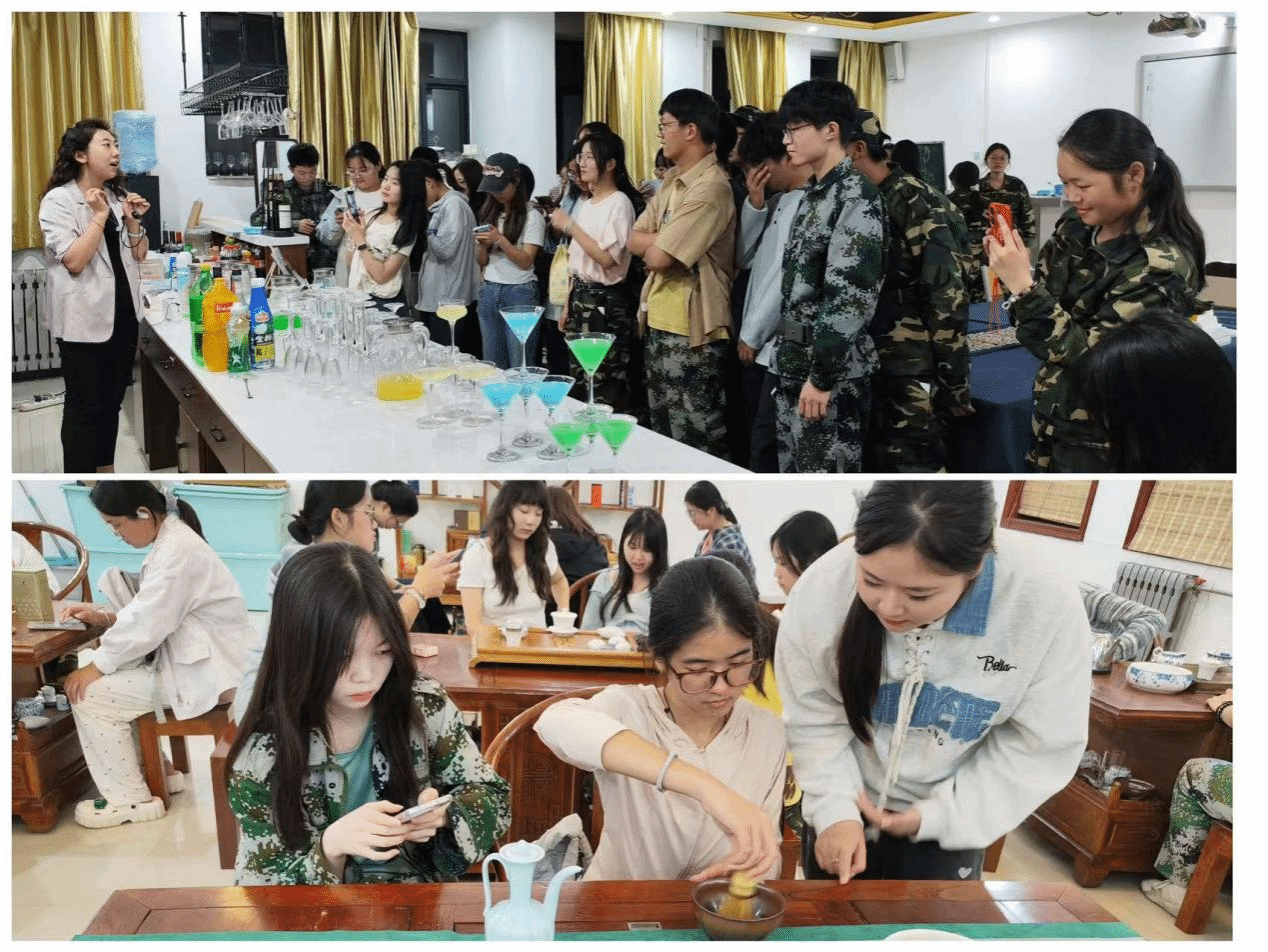 实践体验环节是本次介绍会的“亮点环节”,也让新生对专业的认知从“理论”走向“具象”。新生们移步学院二楼实训区域:在A1-221西餐实训室,马主任结合酒水调制、餐品搭配的实操演示,讲解“酒店餐饮服务中的细节管理”,让新生理解“专业技能如何影响客户体验”A1-224茶艺实训室,旅游专业学“茶艺文化与旅游服务融合”为主题,从茶具辨识、泡茶流程到茶文化讲解,全程示范互动,新生们还亲手体验了茶水冲泡,在“闻香、品茶”的过程中,感受到“文旅融合”下专业的文化属性。现场互动频繁,新生们不时提问“茶艺技能如何应用在文旅项目中”“西餐服务实训是否会纳入课程考核”,教师与学姐的耐心解答进一步加深了其对专业实践的期待。不少新生表示,“原来旅游管理不只是‘带团’,还有这么多有趣又实用的技能,现在对专业学习更有动力了”。