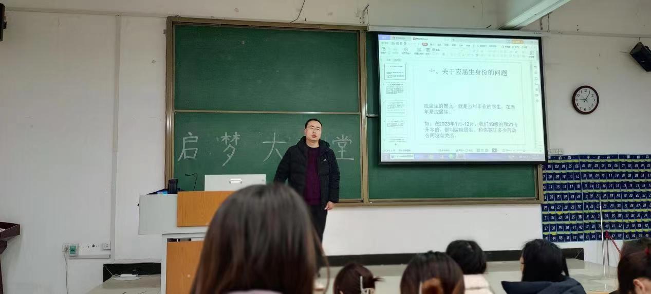 2月21日上午,由招生就业处主办,国土与旅游学院承办的启梦大讲堂系列讲座之“毕业生应聘技能培训”在国土楼A2-104举行。本次讲座由陈留洋老师主讲,2023届150位毕业生参与培训。