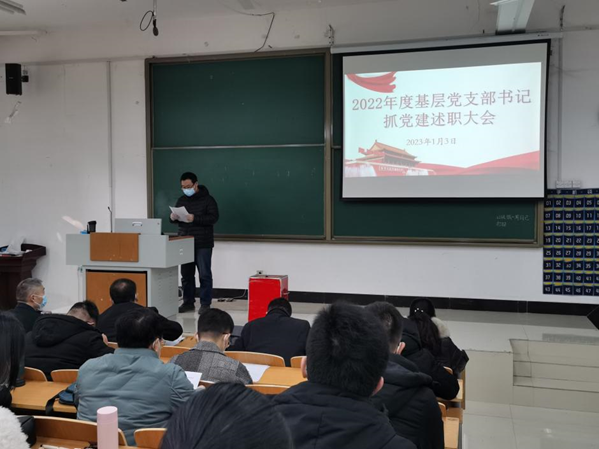 会上,刘振中首先介绍了本次会议安排,并将述职评议考核要求和标准进行了简要说明。四名基层党支部书记依次就学习贯彻习近平新时代中国特色社会主义思想和党的二十大精神情况、推动基层党支部组织建设情况、党建引领专业融合发展情况、落实疫情防控常态化情况及其他方面展开现场述职。各支部书记全面总结回顾了一年的工作,认真查摆发现问题并提出整改提升措施。全体参会人员对学院四名基层党支部书记抓党建工作进行了民主测评。