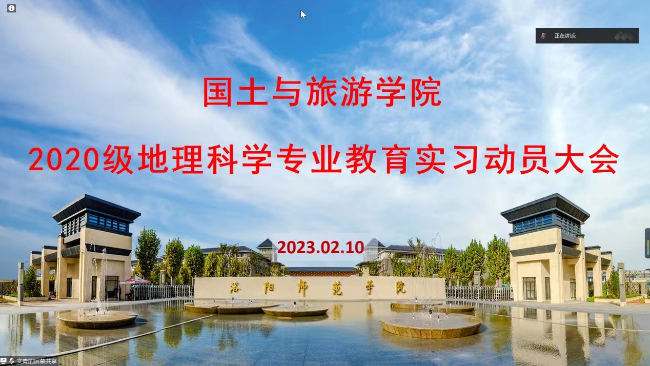 教育实习是师范生培养的重要组成部分,为确保2020级地理科学师范生教育实习工作的顺利开展,我院于2023年2月10日举行2020级地理科学专业教育实习动员会线上会议。学院全体领导出席会议,地理科学系全体老师以及2020级地理科学专业学生参加本次会议。动员会由地理科学系主任杨会民主持。