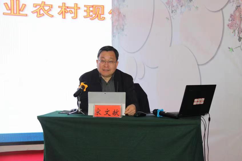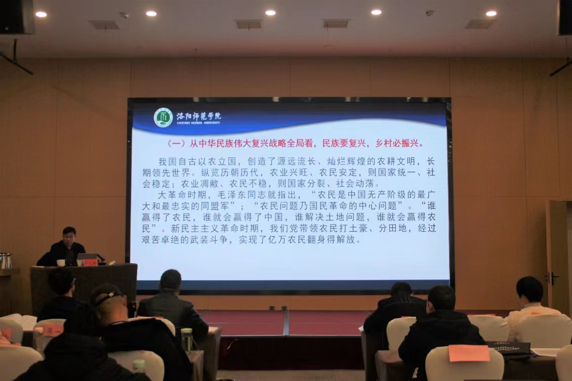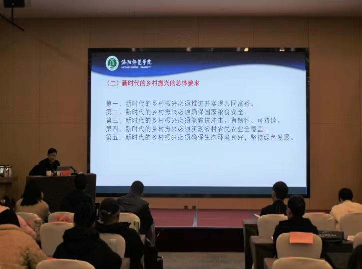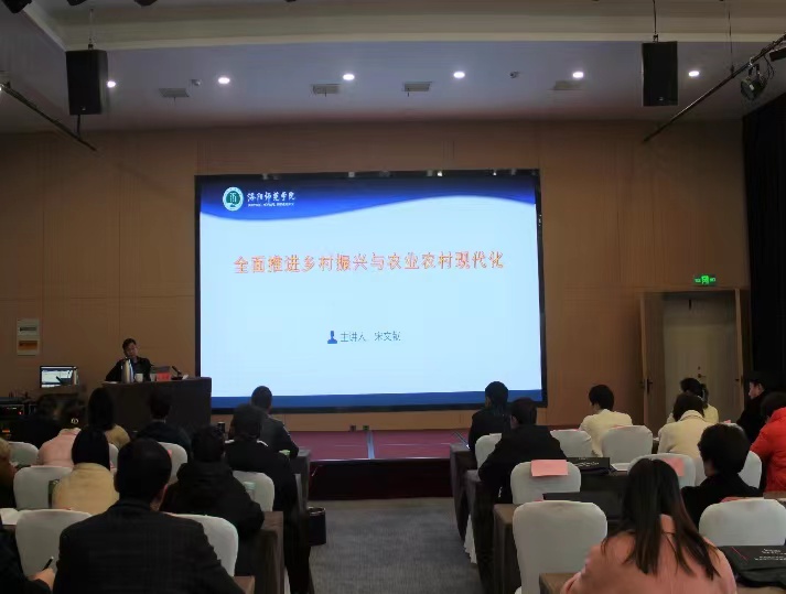2023年2月14日上午,校党委副书记宋文献教授以全面推进乡村振兴与农业农村现代化为题,在颐君大厦为2022年河南省高素质农民培训班作专题辅导报告。来自洛宁县、嵩县的200名学员以及国土与旅游学院师生代表到现场聆听报告。