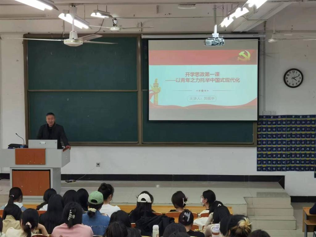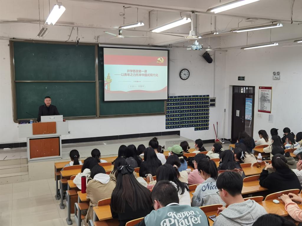 为深入学习宣传党的二十大精神,扎实开展春季学期“开学思政第一课”,激励我院毕业生弘扬伟大建党精神和红旗渠精神,自信自强、守正创新,踔厉奋发、勇毅前行,在现代化建设新征程上奋勇争先、更加出彩。3月3日,国土与旅游学院在A2-104教室进行以“开学思政第一课——以青年之力托举中国式现代化”为主题的理论宣讲,主讲人为学院党委书记刘振中,全体毕业生参加本次宣讲会。
