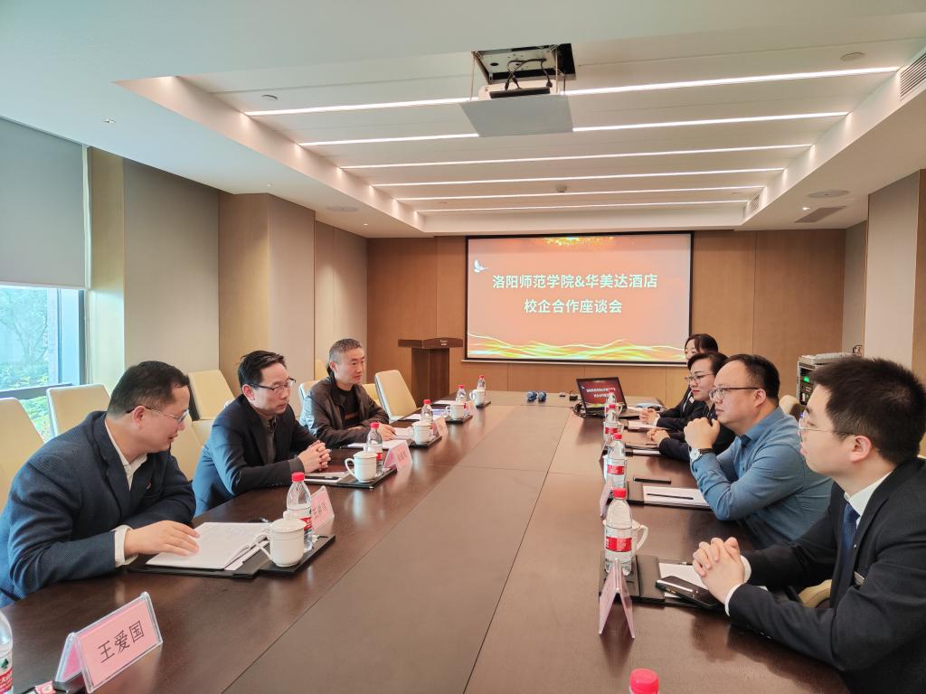 张运礼一行首先参观了酒店前厅、客房、餐厅等部分,对酒店的硬件设施表示肯定,座谈会上张运礼表示华美达酒店是洛阳地区的知名酒店,在洛阳文旅产业链条中占据重要地位,这次走访是希望能和酒店加强合作,建立毕业生实习实训基地,促进毕业生高质量就业。蒋维饶有兴致地回忆了学校生活并介绍了酒店的发展历程、发展现状以及酒店员工的职业前景,表示希望未来能增强校企联动,协同学校参与学生生涯规划,吸引更多优秀毕业生进入酒店行业,进入华美达就业。国土与旅游学院书记刘振中和副院长王洪瑞介绍了学院旅游管理和酒店管理专业近几年的发展状况、学生的就业认知等情况,商讨了下一步校企合作的具体措施,力争形成短期拓岗促就业,长期合作共赢的新局面。