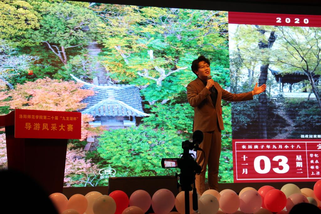 5月24日,由洛阳师范学院龙门书院、国土与旅游学院、历史文化学院联合主办,青苹果旅行学社承办,宁波九龙湖开元度假酒店赞助的“游大好河山,展青春风采”第二十届导游风采大赛决赛在学校蓓蕾剧场举行。校党委副书记宋文献,宣传部、学生处、招生就业处及龙门书院领导和300余名师生出席大赛。