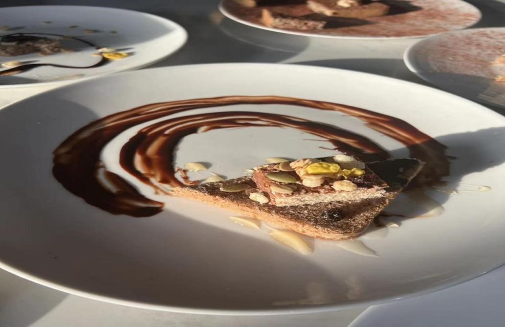 活动开始之初,同学们都积极地交流和探讨,同学们开始研究食物的色彩搭配。他们巧妙地将鲜艳的花朵与精致的点心相互搭配,营造出诱人的色彩组合。有的同学选择将红色的花朵点缀在巧克力旁,形成了明亮的对比;有的同学则将色彩斑斓的麦片和面包融合,营造出甜蜜的氛围。每一道简餐都仿佛是一幅色彩斑斓的画作,令人目不暇接。