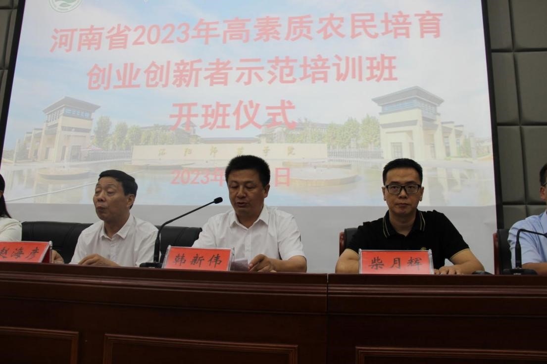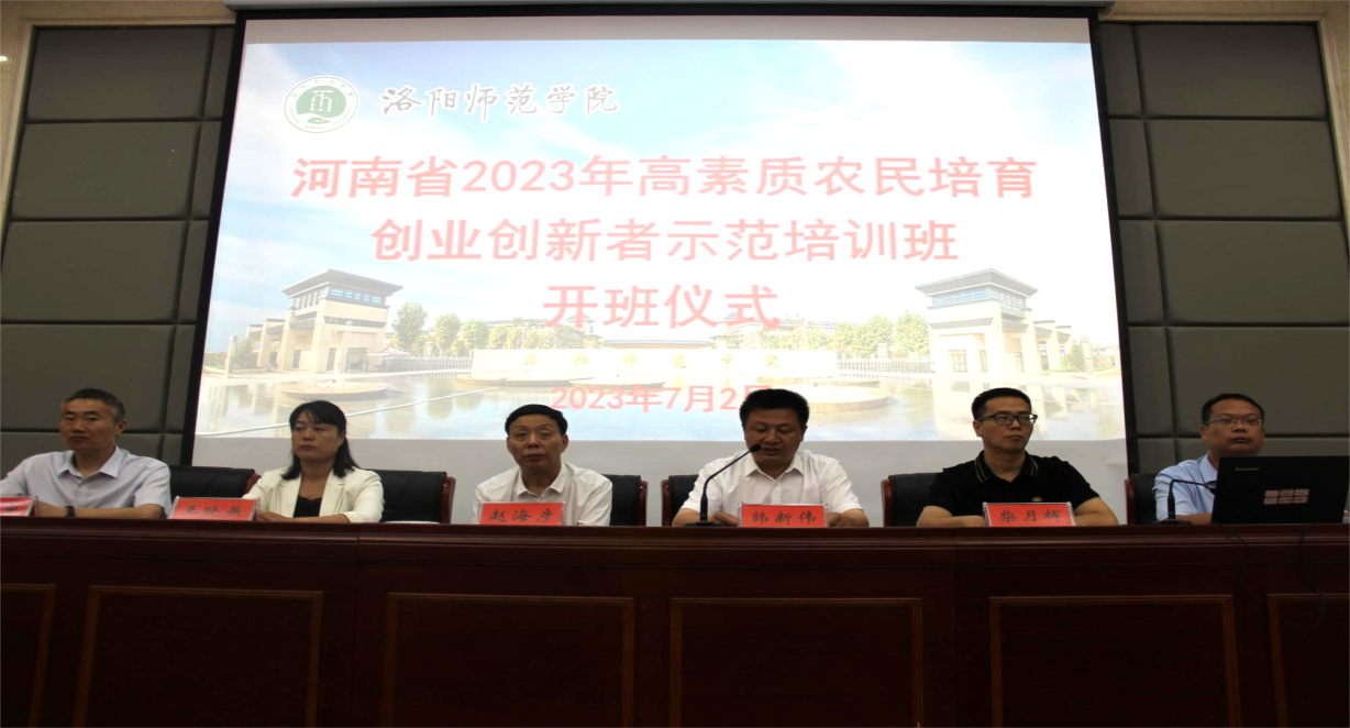 为贯彻落实《河南省2023年高素质农民培育工作实施方案》文件精神,响应农民需求,促进乡村振兴。2023年7月2日,由我校承办的河南省2023年高素质农民培育计划农业创业创新者示范培训班顺利开班。洛阳师范学院副校长赵海彦、孟津区人民政府副区长韩新伟、孟津区乡村振兴局党组书记王晓燕、老城区农业农村局副局长柴月辉、洛阳师范学院国土与旅游学院党委书记刘振中等领导出席了开班仪式,来自孟津区、老城区和涧西区农村的100位学员参加了培训。仪式由国土与旅游学院院长程金龙主持。