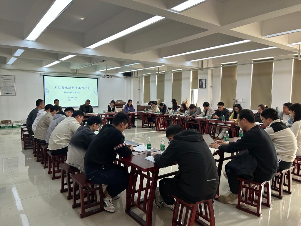 为进一步提高辅导员队伍的工作能力和业务水平,搭建工作研讨平台,推动辅导员交流经验、共享成果,不断提高辅导员队伍的凝集力和战斗力。4月7日下午,我院在龙门书院一号院非遗艺术馆举办“倾心守护 与爱同行”辅导员工作沙龙。龙门书院全体辅导员参加活动。