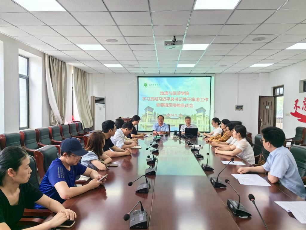 近日,习近平总书记对旅游工作作出重要指示。5月20日上午,地理与旅游学院在A2-201组织开展学习贯彻习近平总书记关于旅游工作重要指示精神座谈会。学院领导班子成员和师生代表参加会议,会议由党委书记刘振中主持。