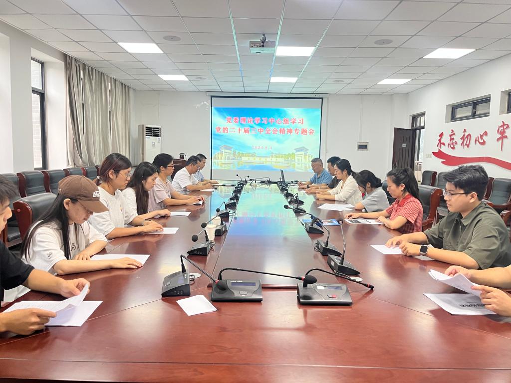8月4日下午,我院党委理论学习中心组在A2-201会议室举行集体学习,专题学习党的二十届三中全会精神。院党委书记刘振中主持会议,党委理论学习中心组全体成员参加会议。
