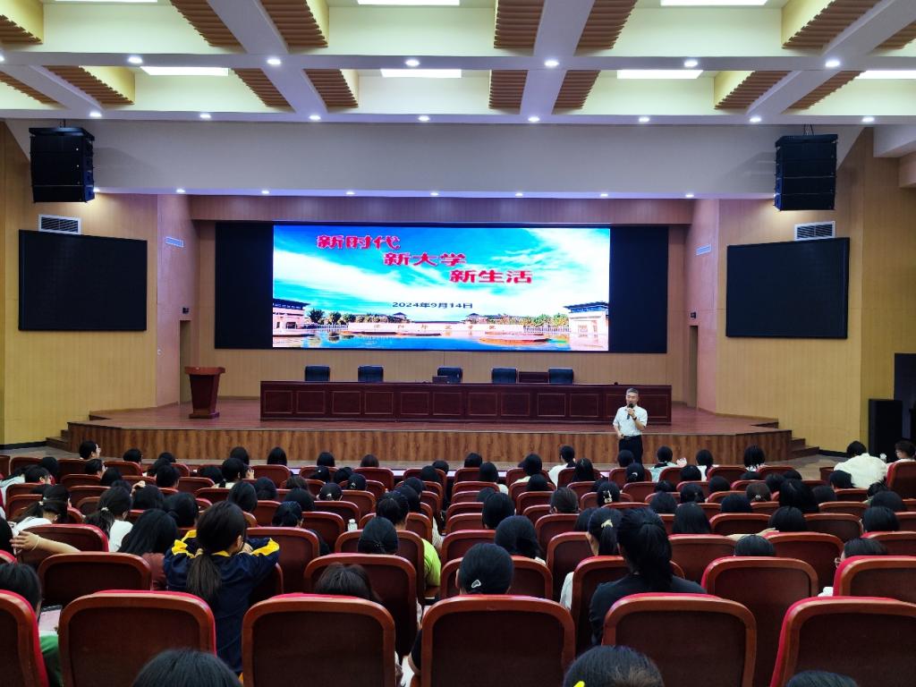 为深入学习贯彻党的二十届三中全会精神,坚定理想信念,强化使命担当。9月14日,我院党委书记刘振中以“新时代、新大学、新生活”为题为2024级新生讲授“思政第一课”。领导班子成员和辅导员出席会议,全体2024级新生参加会议。