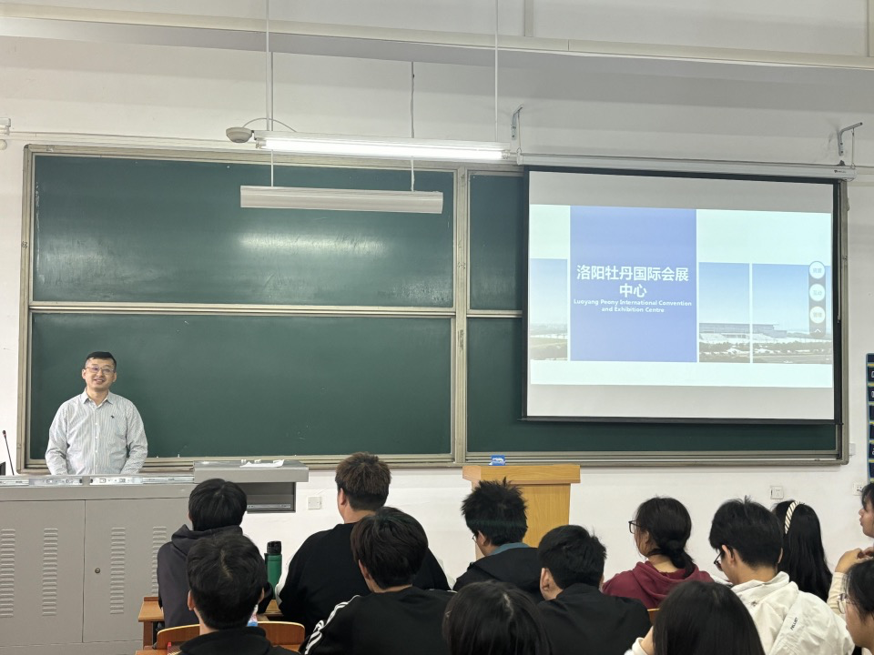 讲座伊始,崔丹以“会展行业发展路径与职业规划”为主题,简洁明了的阐述了洛阳会展产业发展史和发展趋势。随后,通过大量的数据和实际案例,详细分析了国际、国内会展经济的市场趋势、潜在机遇和面临的挑战,并重点讲解了会展活动中的展馆运营、主场服务、配套服务等关键环节。同时,崔丹以个人经验积极引导学生从事会展相关行业。