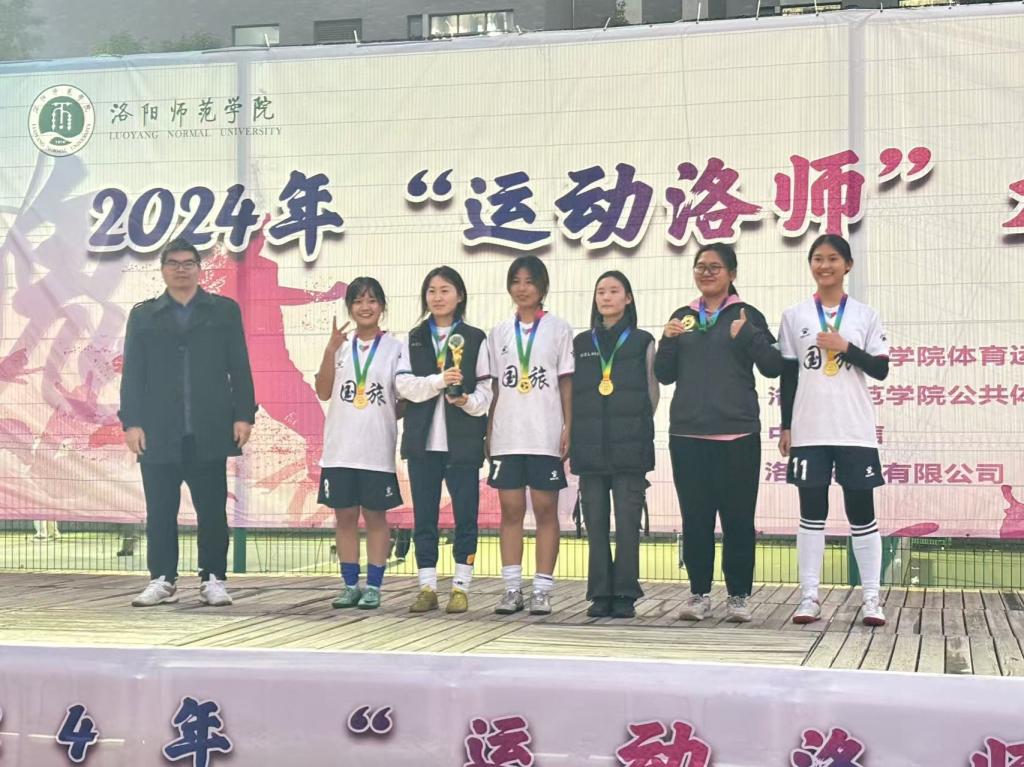 为弘扬体育精神,丰富校园生活。11月14日,我院足球队参加2024年“运动洛师”大学生足球比赛决赛,女足斩获冠军,男足荣获第五名,其中王俊熙获男子“金靴奖”,白立慧获女子“金手套奖”。