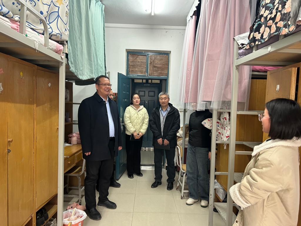 会后,程金龙副校长走访了学生宿舍,仔细询问同学们返校后的适应情况和对新学期的规划安排,殷切叮嘱同学们要珍惜大学时光,尽快调整状态,尽早明确奋斗方向。提醒大家加强体育锻炼,调整好心态投入新一轮的学习中去。保持与辅导员、班主任和学业导师老师的日常沟通,为自身生涯发展和职业能力提升奠定坚实基础。