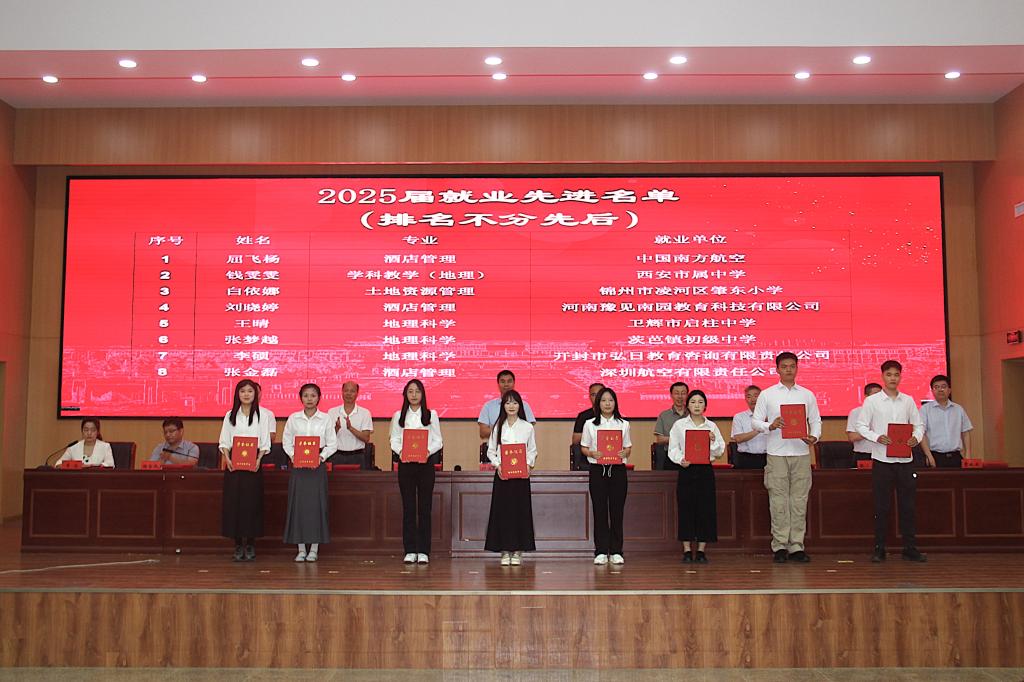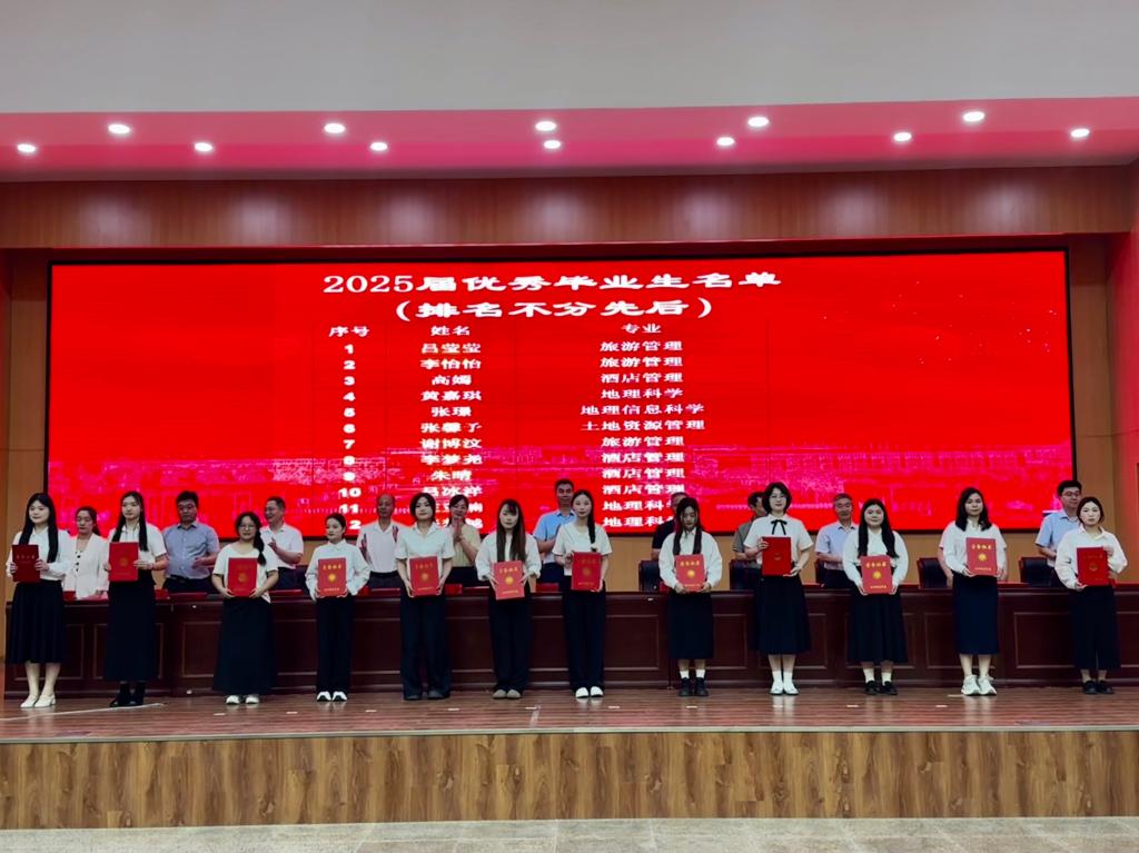 5月19日上午,地理与旅游学院2025届毕业典礼暨表彰大会在G1-112报告厅隆重举行。党委学生工作部(学生处)部长郎晓林、党委研究生工作部部长谭勇刚、校团委书记高莹、教务处课程中心主任赵虹元、招生就业处处长刁鸿安、地理与旅游学院全体领导班子成员出席会议。教师代表、辅导员以及2025届全体毕业生参加典礼。典礼由学院党委副书记李佳主持。