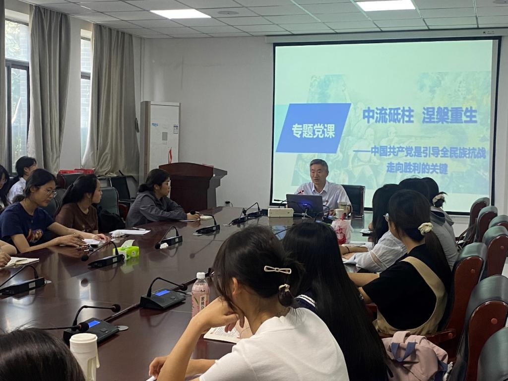 刘振中从抗日战争中的“最早抗战、坚定抗战、领导抗战、艰苦抗战”四个维度展开深入讲解。最早抗战方面,讲述了中国共产党率先高举抗战旗帜,组织抗日游击战争;坚定抗战中,强调其推动国共合作、维护统一战线的努力;领导抗战时,阐释全面抗战路线与持久战理论;艰苦抗战里,展现敌后抗战的英勇事迹。让同学们深刻领略到了中国共产党在抗战期间展现出来的“天下兴亡、匹夫有责的爱国情怀,视死如归、宁死不屈的民族气节,不畏强暴、血战到底的英雄气概,百折不挠、坚忍不拔的必胜信念”伟大抗战精神。培训中,刘振中鼓励同学们以抗战精神为指引,勤奋学习、严格自律。现场气氛热烈,同学们认真聆听记录,对党的抗战贡献有了更深刻认识。
