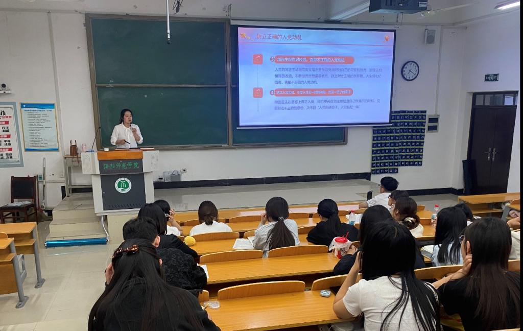 李佳从党的三大历史贡献切入,回顾党建立人民政权、确立社会主义制度、开辟中国特色社会主义道路的历程,强调党的领导是历史和人民的选择。她结合党章,解读党员八项权利与义务的统一性,要求学员以党员标准规范言行。针对“如何树立正确入党动机”,她结合马斯洛需求理论,剖析大学生入党动机误区,以抗疫党员冲锋、支教教师奉献等案例,阐释正确入党动机的三重内涵:坚定共产主义信念、坚守为民服务宗旨、树立先锋模范意识。她强调,端正入党动机需理论学习与实践锻炼并重,做到“思想入党”先行。培训现场气氛热烈,学员专注聆听、积极互动。大家表示,深刻认识到入党是责任担当,将从学好专业、参与志愿服务做起,争取早日成为合格党员。