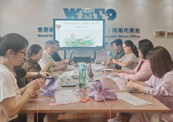 随后开展的非遗手工体验环节,党员们编织象征“辟邪纳吉“的五彩绳,制作蕴含中医智慧的艾草锤,在丝线缠绕与草药清香中感受民俗智慧,现场气氛热烈融洽。通过此次活动,让传统文化成为强化党员身份意识的生动教材,与会党员纷纷表示,将把活动中汲取的文化自信转化为育人动力,在党建引领下,让非遗技艺在新时代焕发新的活力。