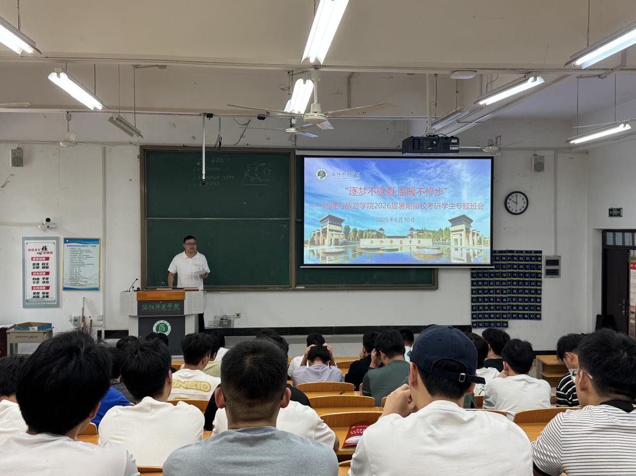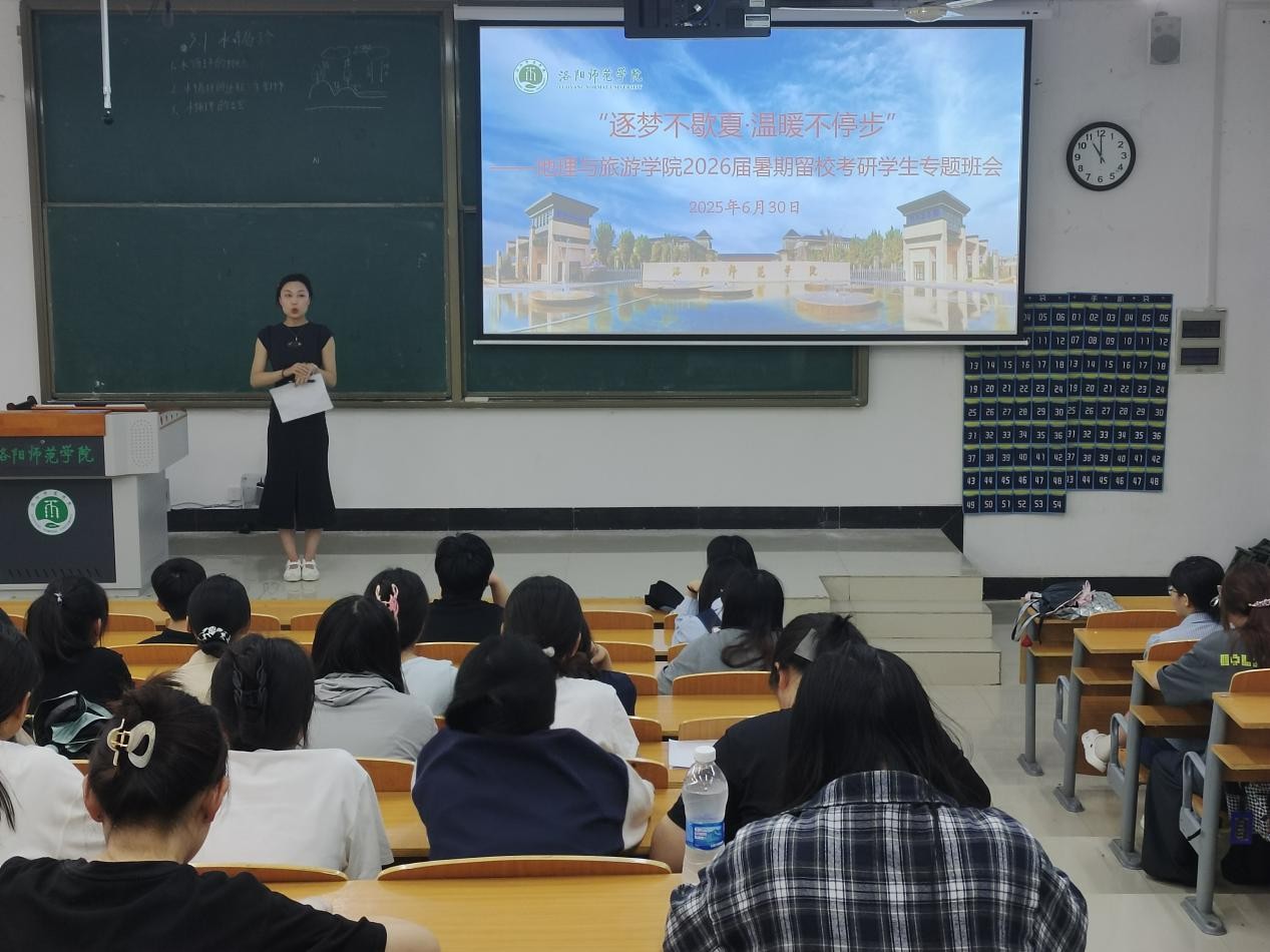 为做好暑期留校学生的服务与管理,引导同学们安全、自律、专注地备战考研,我院于6月30日召开2026届暑期考研留校学生专题班会,156名留校同学全员参加。此次班会不仅是一次纪律提醒,更是一场心灵动员,旨在为同学们暑期备考之路注入信心与动力。