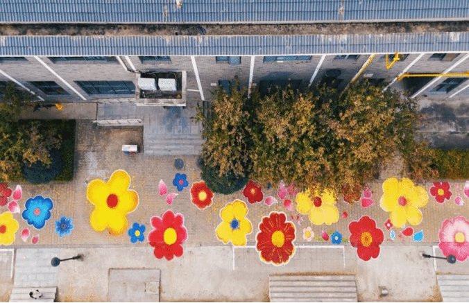 为彰显美育特色、提升校园文化氛围,10月28日至11月4日,在鸿都书院二号学生社区书院团委组织下,学生们在枣园商业街共同打造了“鸿都花路”主题道路彩绘景观。来自2407、2509和2510团支部的同学们携手创作,将原本灰白的水泥路面,装点成了一条绚丽多彩的校园艺术长廊。