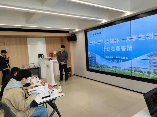 为激发学生创新精神,培育创业实践能力,12月8日,鸿都书院二号学生社区成功举办了2026年“挑战杯”大学生创业计划竞赛书院答辩评审会。本次比赛特邀电气工程与自动化学院副院长杨数强、人工智能学院副院长李德光、校团委创新实践部部长乔亮亮三位老师担任评委。活动旨在搭建学生创新创业展示平台,选拔培育优秀项目,为更高层次竞赛奠定基础。