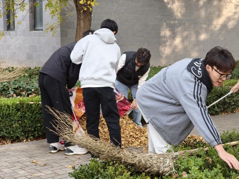 活动现场,大家分成三组,分工协作、秩序井然、干劲十足。有的负责清扫主干道上的成片落叶;有的弯腰清理花坛角落的细碎枯叶;还有的合力将装满落叶的垃圾袋搬运至指定回收点……各显身手,用实际行动践行着劳动精神,充分展现了入党积极分子昂扬向上的精神风貌,受到师生一致肯定。