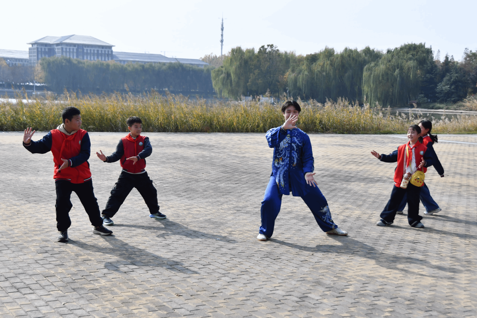 在互动体验环节,孩子们在武术队员的耐心指导下,亲身体验了太极、抱拳礼、马步、冲拳等基本动作。他们一个个神情专注,模仿得有板有眼,虽然动作稚嫩,但那股认真劲儿赢得了老师们的连连称赞。中华武术的刚柔并济与精神内涵得以生动传递,真正实现了文化育人、润物无声的教育效果。