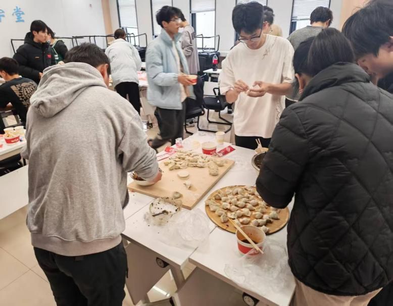 活动现场,同学们分工协作,和面、擀皮、调馅、包捏,动作由生疏渐至娴熟。大家交流家乡习俗,分享包饺子技巧,畅谈学习生活,场面温馨热烈。随着一盘盘饺子下锅,香气四溢,欢声笑语中洋溢着浓浓的节日氛围与同窗情谊。