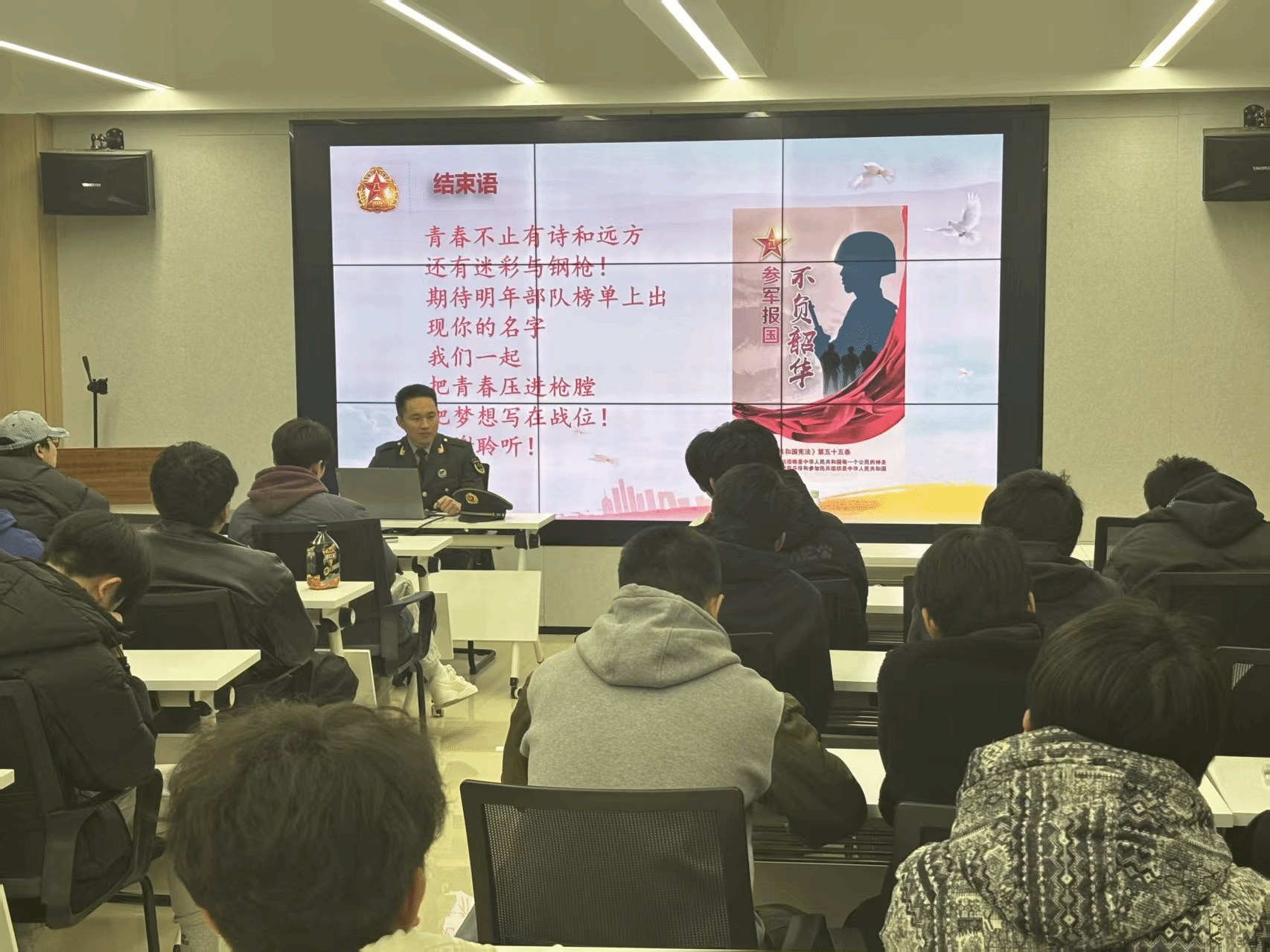 此次征兵专题讲座的开展,有效帮助同学们全面了解参军入伍政策与发展前景,进一步弘扬了爱国主义精神,为鼓励符合条件的青年学子投身国防事业、履行兵役义务奠定了良好基础。