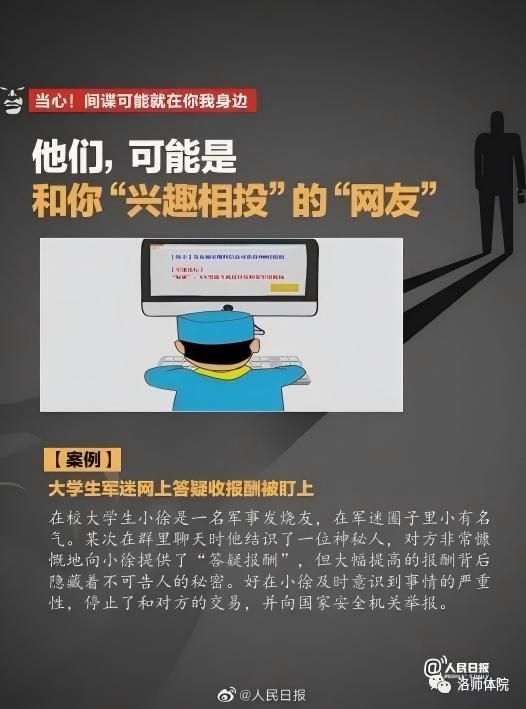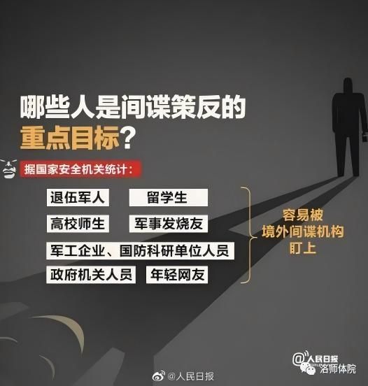 (3)一些境外组织和人员经常出现在我军事、保密单位周边,乘机盗取秘密情报和信息。如遇有可疑人员要立即报告。