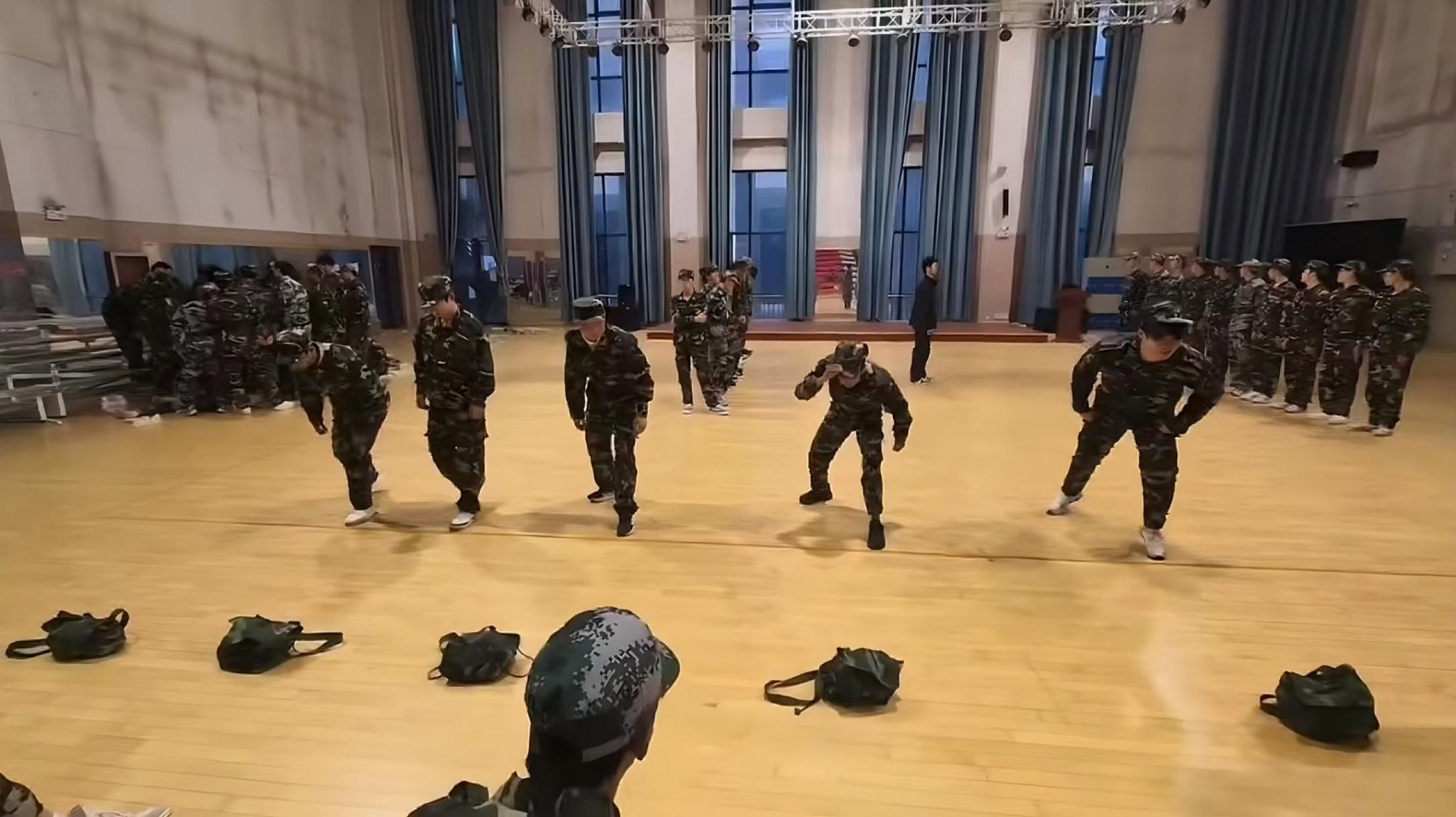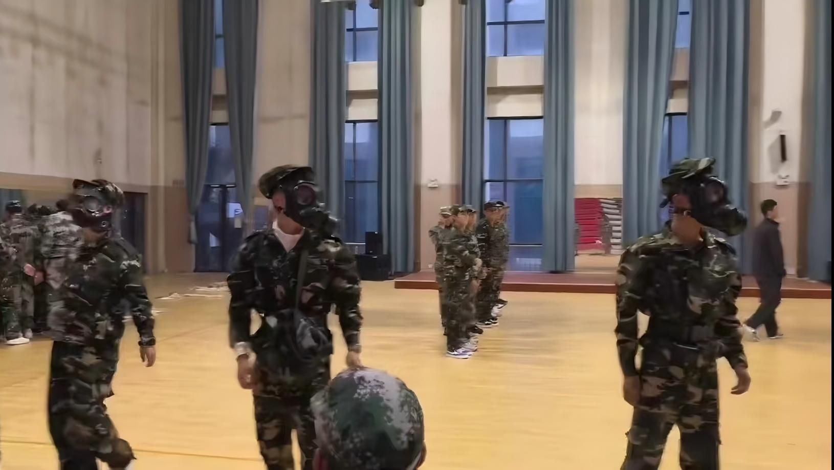 演练现场设置在学校室内体育馆,身着迷彩服的新生们整齐列队,在教官的专业指导下,依次学习防毒面罩的构造、佩戴要领与快速使用技巧。教官通过现场示范,详细讲解了面罩佩戴的步骤细节,从打开面罩包装、调整头带松紧,到检查气密性、完成快速佩戴,每一个环节都逐一拆解、手把手教学。