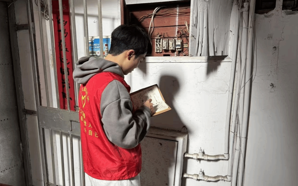 符锦瀚同学投身江西省南昌市滕王阁街道上凤凰坡社区服务,排查住宅楼消防安全隐患,整治公共空间和楼道环境,普及消防安全知识,筑牢社区安全防线。