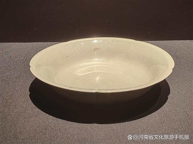 这件造型别致的瓷碟,名为五瓣葵口内凹底深腹秘色瓷碟,是唐代官造专供宫廷之器,出土自法门寺地宫。