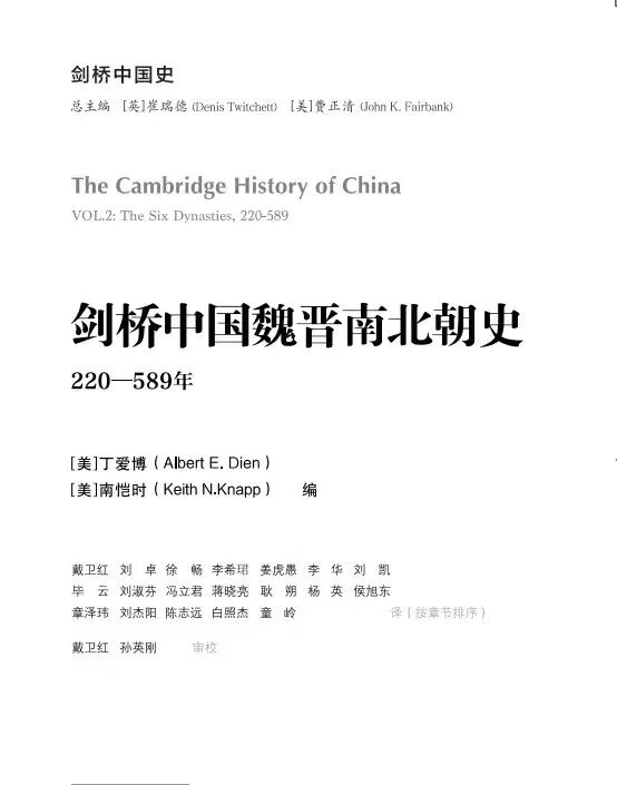丁爱博(AlbertDien):斯坦福大学荣休教授。1927年出生于美国密苏里州,加州大学伯克利分校博士,曾师从薛爱华、陈世骧、赵元任等学术大师学习中国中古历史、语言与文化,多次到中国进行学术考察与交流,是美国早期中古中国学会的创始人之一。先后获斯坦福大学“卓越终身成就奖”和台湾师范大学“杰出校友”称号。已出版《六朝史:六朝文明》《早期中古中国的政治与社会》等专著,参与编辑《早期中古中国典籍:书目指南》、主编出版《剑桥中国史·魏晋南北朝卷》。