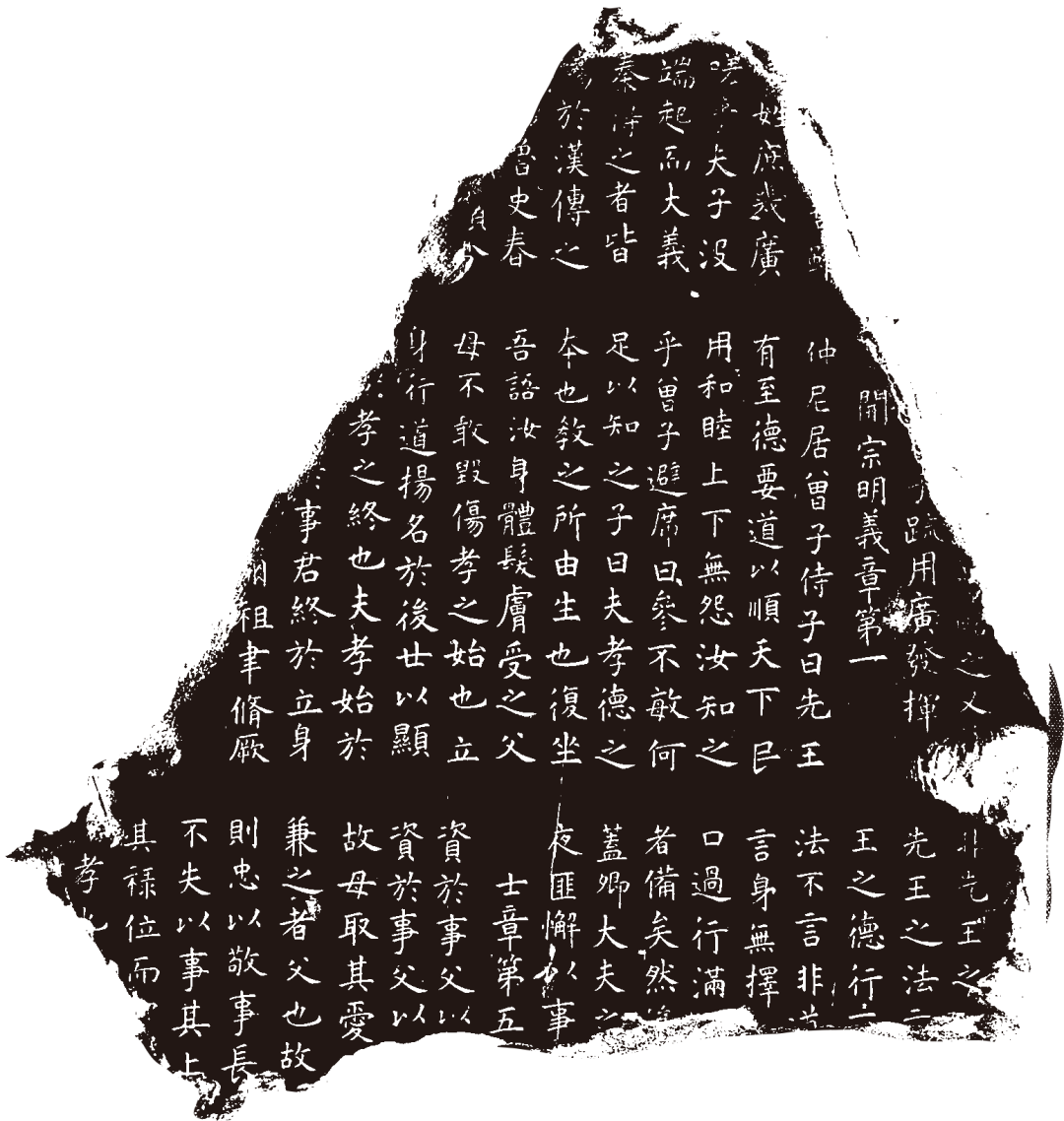 清康熙三年(1664),集《开成石经》中的字样补刻《孟子》一部,凡17面39506字,并置其于唐刻“十二经”附近,并称“十三经”。《开成石经卷》完整收录了“十三经”的原石拓片,依石刻序次排布,还包含明万历十六年(1588)在石经补字过程中刊刻的《开成石经补缺》96石,约5300字,完整保存了迄今所见儒经的最早及最完善的版本。