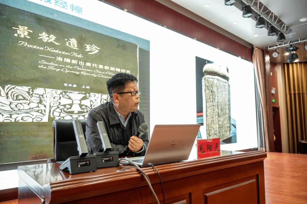 在主旨发言阶段,中心毛阳光教授分析了2000年以来洛阳石刻文献整理与研究的情况,展示了近年来洛阳古代石刻所取得的丰硕成果,具有涵盖时段长、种类丰富、文献价值高、整理主体多元等特色,引起了社会的广泛关注,极大地促进了河洛文化的研究。同时,他也指出了目前整理研究中存在的问题,如大量民间流散石刻亟待整理、题材重复、整理质量有待提高、研究不够及时等问题。并提出了加快整理速度与时效、加强研究力量、促进与外界的学术交流、打造多学科交叉的高水平团队与平台、推进研究手段的创新等提升整理研究的方法。他认为:未来河洛石刻文献整理研究前景广阔。学者们应该深入挖掘整理好这批宝贵资源,协同合作,推进知识创新、理论创新、方法创新,用河洛文化唱响新时代的文化自信。