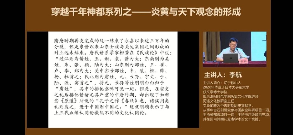 本月18日,我中心研究人员李航博士在洛阳市图书馆举办题为《中古时期炎黄与天下观念的形成》的讲座。本次讲座在洛阳市图书馆、洛阳日报、洛阳晚报、洛阳旅游、百姓文化等多个平台进行直播,全国各地数万名观众在线上听讲。