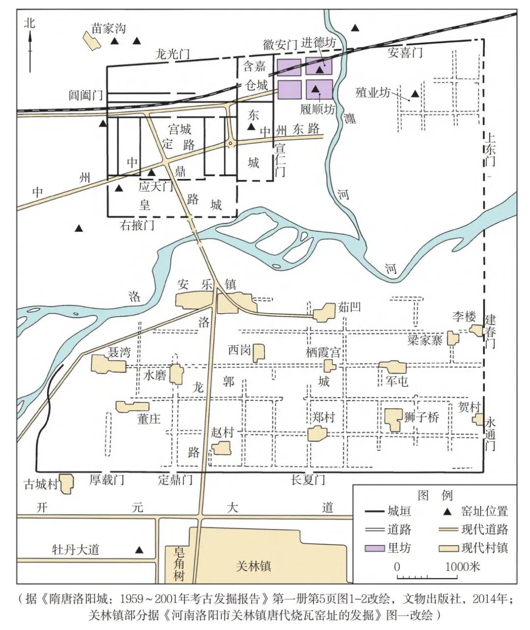 图一 隋唐洛阳城考古发现砖瓦窑址位置示意图