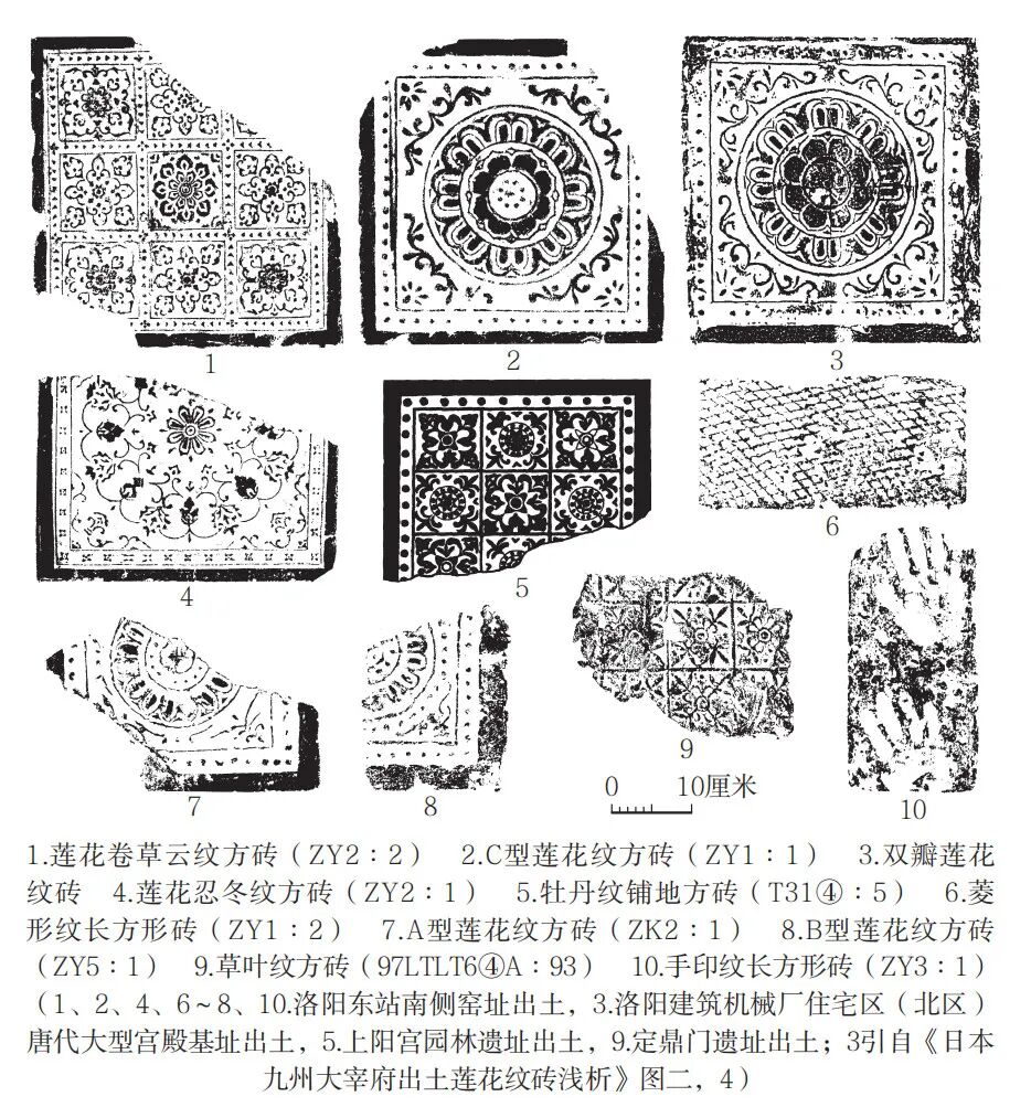 b.余黎星:《洛阳唐代砖瓦窑出土器物研究》,《洛阳理工学院学报》(社会科学版)2013年第3期。c.李清临:《隋唐时期砖瓦窑研究》,《江汉考古》2015年第1期。[2]洛阳博物馆:《洛阳隋唐宫城内的烧瓦窑》,《考古》1974年第4期。[3]洛阳博物馆:《隋唐东都洛阳城发现的几处砖瓦窑群》,见《文物资料丛刊》(2),文物出版社,1978年。[4]中国社会科学院考古研究所洛阳唐城队:《隋唐洛阳城东城内唐代砖瓦窑址发掘简报》,《考古》1992年第12期。[5]a.四川大学历史文化学院考古学系、洛阳市文物工作队:《河南洛阳市瀍河西岸唐代砖瓦窑址》,《考古》2007年第12期。b.洛阳市文物考古研究院:《河南洛阳市新街口唐宋窑址的发掘》,《考古》2015年第6期。c.四川大学历史文化学院考古学系、洛阳市文物工作队:《河南洛阳市隋唐东都外郭城五座窑址的发掘》,《考古》2008年第2期。d.洛阳市文物考古研究院:《河南洛阳市瀍河西岸唐宋砖瓦窑址发掘简报》,《洛阳考古》2016年第3期。e.洛阳市文物工作队:《隋唐东都洛阳城外廓城砖瓦窑址1992年清理简报》,《考古》1999年第3期。f.洛阳市文物工作队:《河南洛阳市瀍河东岸唐代窑址发掘简报》,《考古》1998年第3期。[6]a.洛阳市文物考古研究院:《洛阳市定鼎北路唐代砖瓦窑址发掘简报》,《洛阳考古》2013年第1期。b.洛阳市文物考古研究院:《洛阳市定鼎北路唐宋砖瓦窑址考古发掘报告》,中州古籍出版社,2016年。以下凡引此书,版本均同。[7]同[3]。[8]洛阳市文物工作队:《河南洛阳市关林镇唐代烧瓦窑址的发掘》,《考古》2007年第12期。[9]同[3]。[10]a.叶万松、余扶危:《洛阳东周至唐宋时期的陶窑概论》,《景德镇陶瓷》1984年增刊。b.申建伟、杨鸿军:《洛阳市空空导弹研究院东周遗址及汉唐窑址》,见《中国考古学年鉴》(2006),文物出版社,2007年。[11]同[2]。[12]同[3]。[13]中国社会科学院考古研究所汉城工作队:《汉长安城北宫的勘探及其南面砖瓦窑的发掘》,《考古》1996年第10期。[14]据《唐会要》记载:“开元十九年六月敕:‘京、洛两都,是惟帝宅,街衢坊市,固须修筑,城内不得穿掘为窑,烧造砖瓦。其有公私修造,不得于街巷穿坑取土’”。参见[宋]王溥撰:《唐会要》第1867页,上海古籍出版社,2006年。[15]同[5]a~e。[16]同[5]f。[17][清]徐松撰,[清]张穆校补,方严点校:《唐两京城坊考》第173页,中华书局,1985年。[18]中国社会科学院考古研究所洛阳唐城队:《洛阳唐东都上阳宫园林遗址发掘简报》,《考古》1998年第2期。[19]中国社会科学院考古研究所洛阳唐城队:《洛阳定鼎路小学唐宋遗迹和东周墓葬发掘简报》,《考古》1997年第11期。[20]同[8]。[21]同[3]。[22]同[10]b。[23]同[3]。[24]据《洛阳市定鼎北路唐代砖瓦窑址发掘简报》,2012年发掘了67座窑炉。《洛阳市定鼎北路唐宋砖瓦窑址考古发掘报告》则称2012年发现了74座唐代砖瓦窑炉,发掘了其中70座。本文从后说。[25]同[5]a、b、e。[26]同[5]f。[27]同[5]e。[28]徐昭峰、马春梅:《洛阳市东车站明代砖窑窑址》,见《中国考古学年鉴》(2004),文物出版社,2005年。[29]a.河南省文物考古研究所等:《宝丰清凉寺汝窑遗址的新发现》,《华夏考古》2001年第3期。b.北京大学考古学系等:《观台磁州窑址》第19~35页,文物出版社,1997年。[30]同[4]。[31][明]宋应星著,夏剑钦译注:《天工开物》第170~175页,岳麓书社,2022年。[32]同[8]。[33]长方形绳纹砖数量极多,有多种规格。以定鼎北路窑址出土者为例,多长33~40、宽15~19厘米,厚多为7厘米。参见《洛阳市定鼎北路唐宋砖瓦窑址考古发掘报告》第115~118页。[34]纹饰分宝装莲花纹、普通莲花纹两种,每种可分多种型式,反映出较长期的生产过程。[35]同[2]。[36]中国社会科学院考古研究所洛阳唐城队:《洛阳唐东都履道坊白居易故居发掘简报》,《考古》1994年第8期。[37]中国社会科学院考古研究所洛阳唐城队:《河南洛阳市隋唐东都重光北门遗址的发掘》,《考古》2007年第11期。[38]中国社会科学院考古研究所洛阳唐城队、洛阳市文物工作队:《定鼎门遗址发掘报告》,《考古学报》2004年第1期。[39]同[5]a。[40]《旧唐书·职官志》第1840页,中华书局,1975年。[41][唐]李林甫等撰,陈仲夫点校:《唐六典》第595~597页,中华书局,1992年。[42]同[2]。[43][唐]李林甫等撰,陈仲夫点校:《唐六典》第594页,中华书局,1992年。[44]《隋书·苏孝慈传》第1259页,中华书局,1973年。[45][宋]王溥撰:《唐会要》第1815页,上海古籍出版社,2006年。[46]《洛阳市定鼎北路唐宋砖瓦窑址考古发掘报告》第144、145页。[47]同[2]。[48]含元殿即隋之乾阳殿,唐武德四年(公元621年)为太宗李世民焚,显庆二年(公元657年)重建,至麟德二年(公元665年)建成,曰乾元殿。武后垂拱四年(公元688年)二月拆乾元殿,于其地造明堂,开元二十七年(公元739年)九月十日又于明堂旧址建含元殿。[49]同[4]。[50]韦娜、宛方:《日本九州大宰府出土莲花纹砖浅析》,《中原文物》2005年第2期。[51]山本遺太郎、谷一尚、藤井純夫編:《古都洛陽秘宝展図録》図版101,山陽印刷株式会社,1983年。[52]同[19]。[53]同[18]。[54]洛阳博物馆:《洛阳发现隋唐城夹城城墙》,《考古》1983年第11期。1975年在隋唐洛阳西夹城唐代灰坑H3出土同类四出草叶纹砖残块。[55]1985年,洛阳定鼎路小学院内的隋唐宫城水渠遗址出土2件此类方砖。参见[19]。[56]1997年,外郭城定鼎门中门道盛唐遗