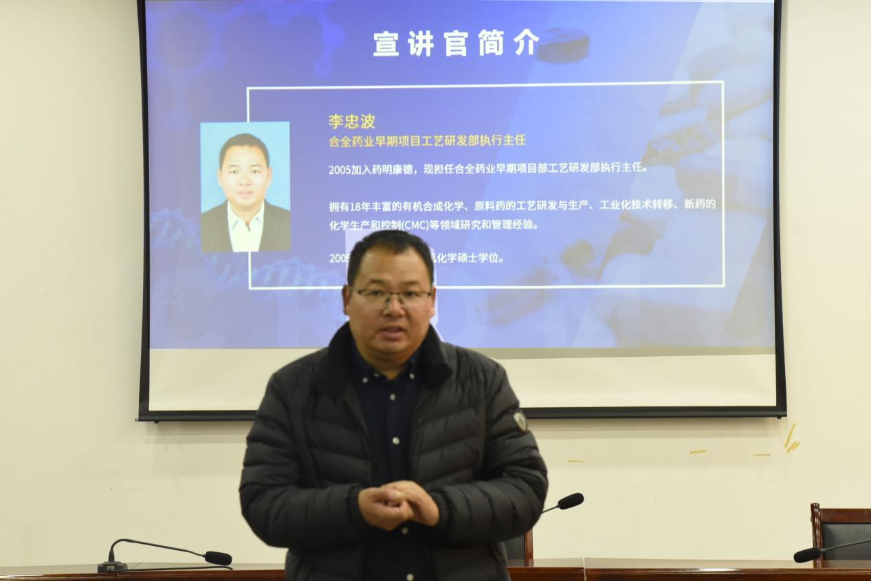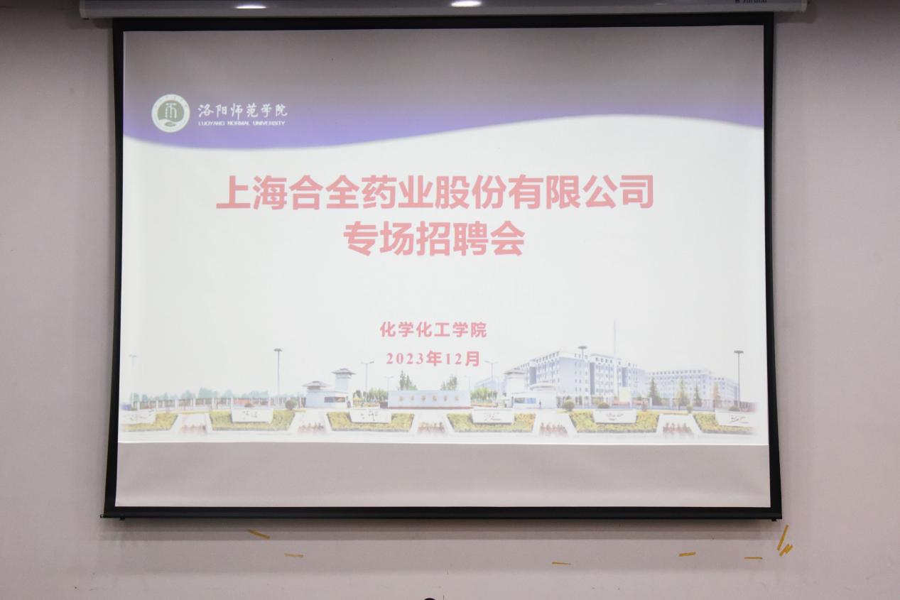 为给广大应届毕业生提供更多就业机会,让大学生更全面的了解就业需求,拓宽毕业生高质量就业渠道,12月1日下午,化学化工学院于化学楼215会议室举办上海合全药业股份有限公司专场招聘会,化学化工学院党委书记骆方成、党委副书记李倩、副院长刘金强、辅导员杜鹏飞出席活动,公司办公室主任李忠波担任宣讲人,大四部分学生参加。