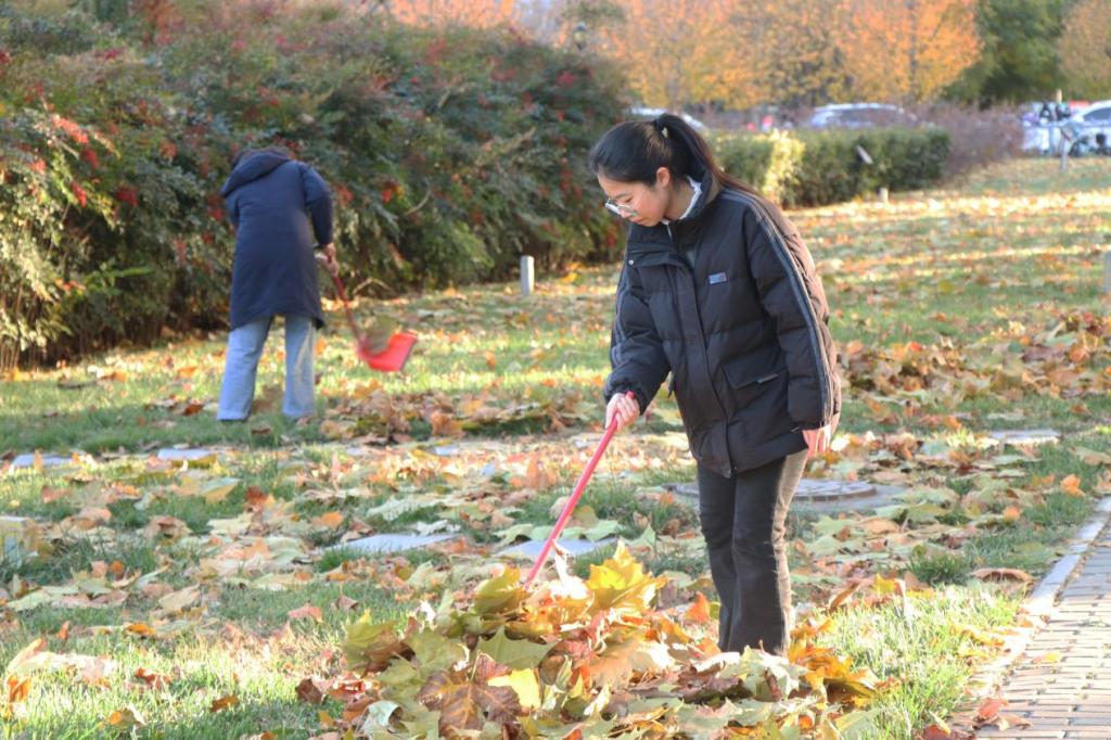 此次活动的主要内容是清理花园草坪上和道路两旁的落叶。活动开始后,同学们热情高涨、干劲十足,积极投入到清扫工作中。学生党员们分工明确、配合默契,有的负责清扫花园草坪,有的负责清扫道路两旁,并将清扫的落叶集中在一起。同学们手持扫把,不畏寒冷,工作认真有序,不放过任何一个角落,充分发扬了不怕苦、不怕累的劳动精神。活动现场随处可见他们忙碌的身影,他们用实际行动展现了大学生吃苦耐劳、乐于奉献的精神风貌。经过他们的不懈努力,花园草坪和道路两旁的落叶很快被清理干净,整个区域变得干净整洁、焕然一新。